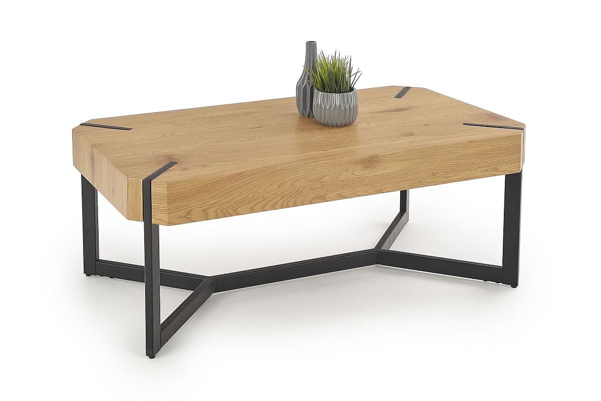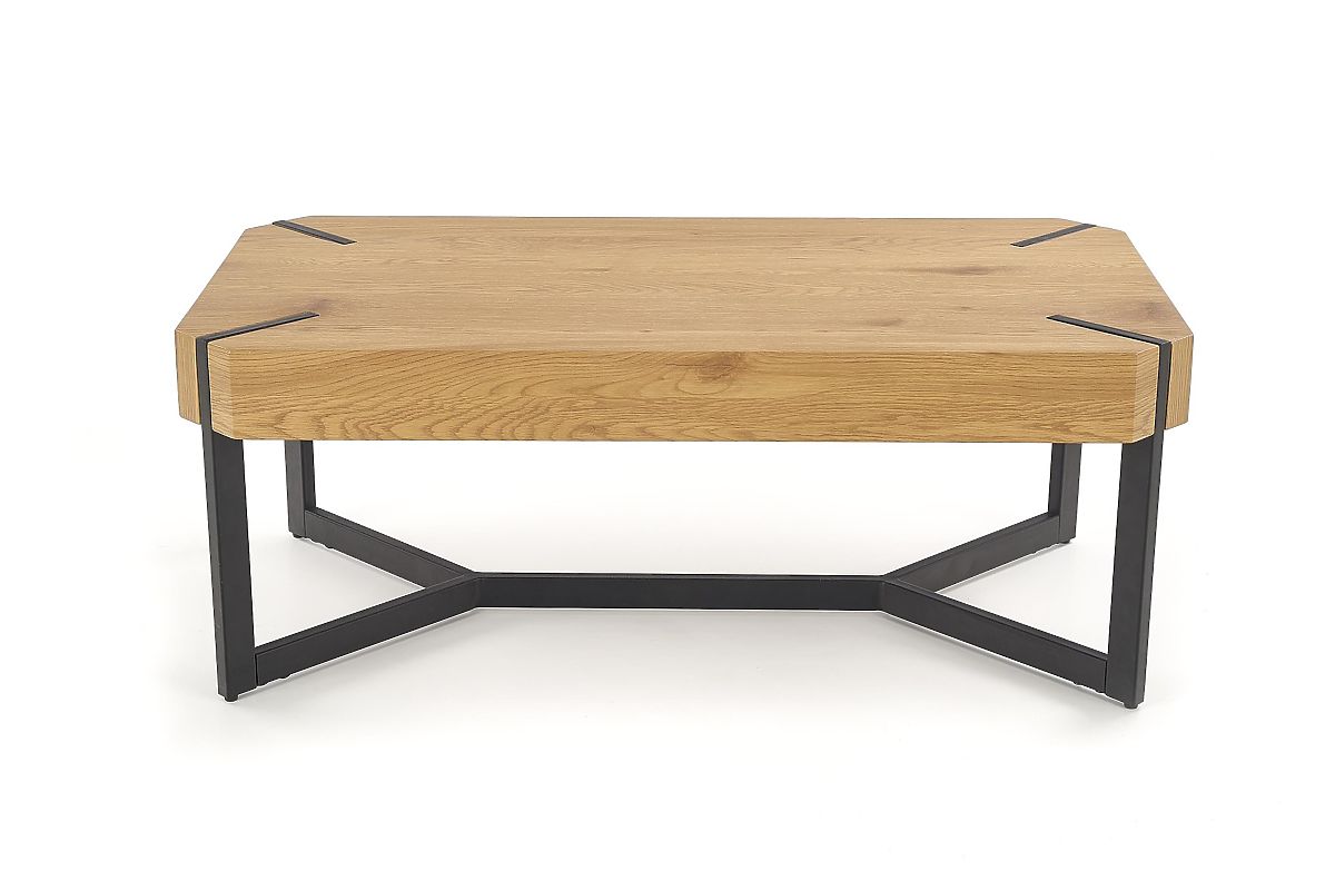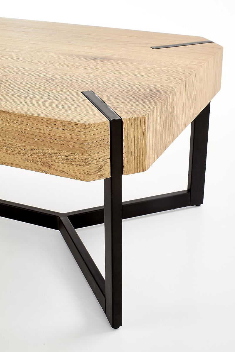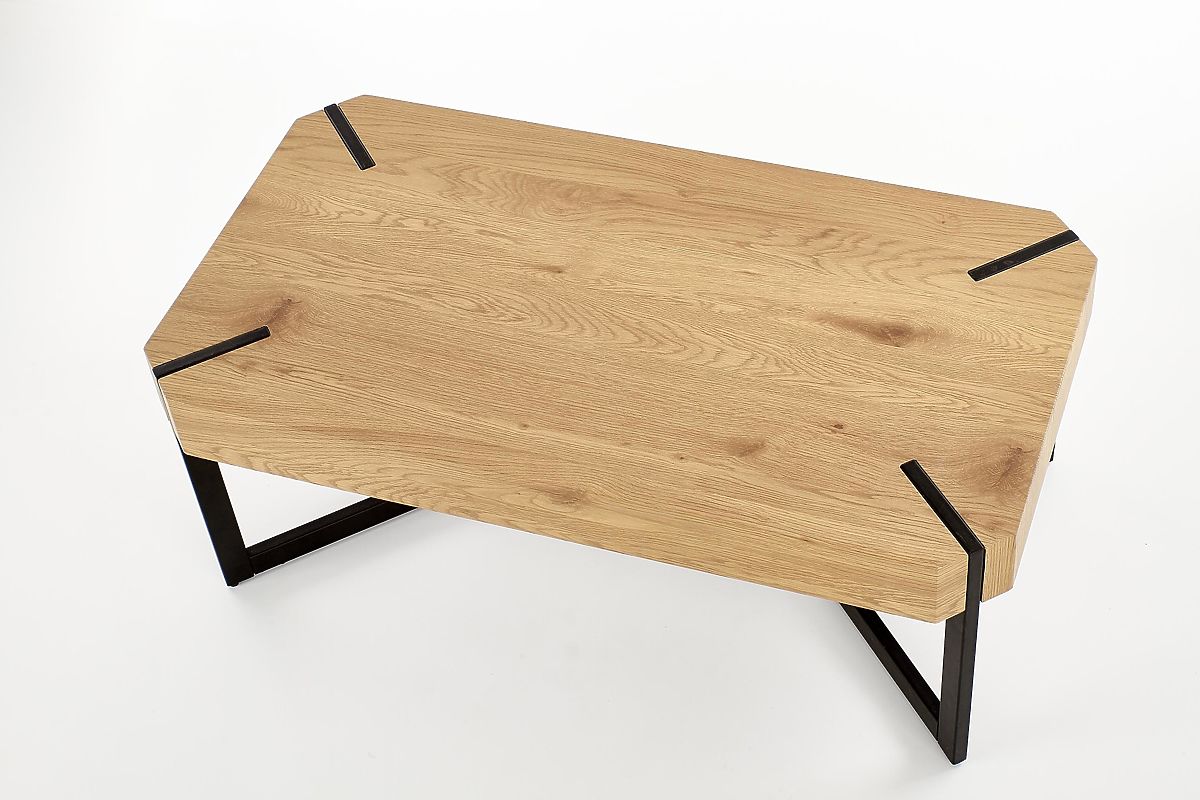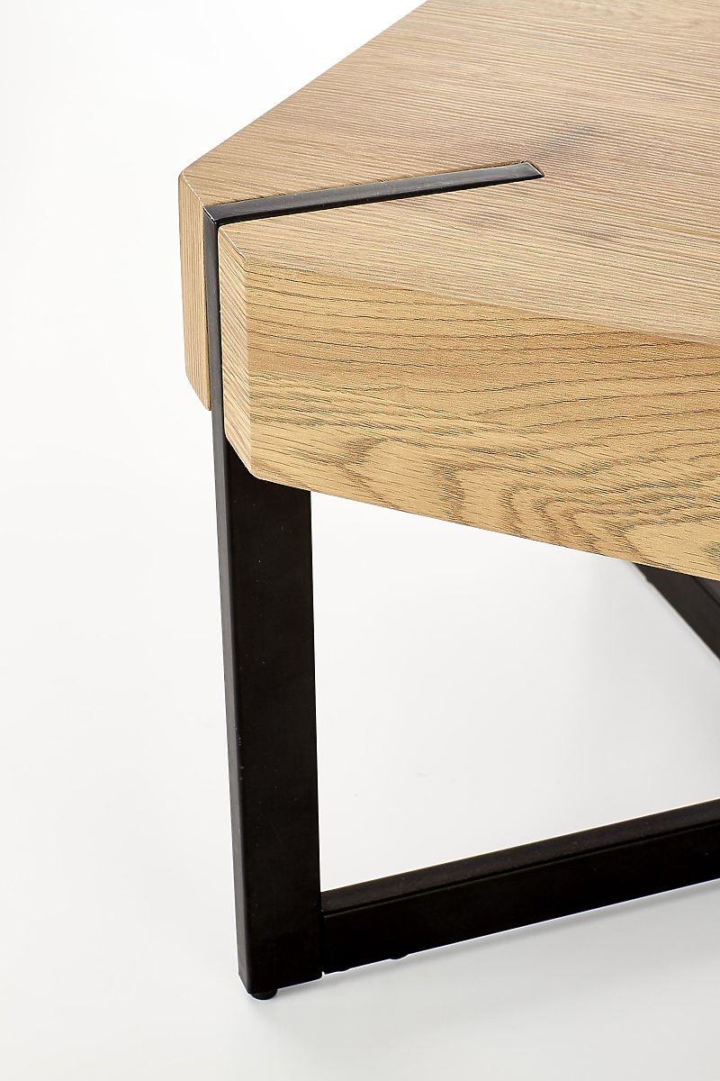 Le plateau est fabriqué en MDF laminé de couleur chêne doré. La structure est en acier peint par poudrage de couleur noire.