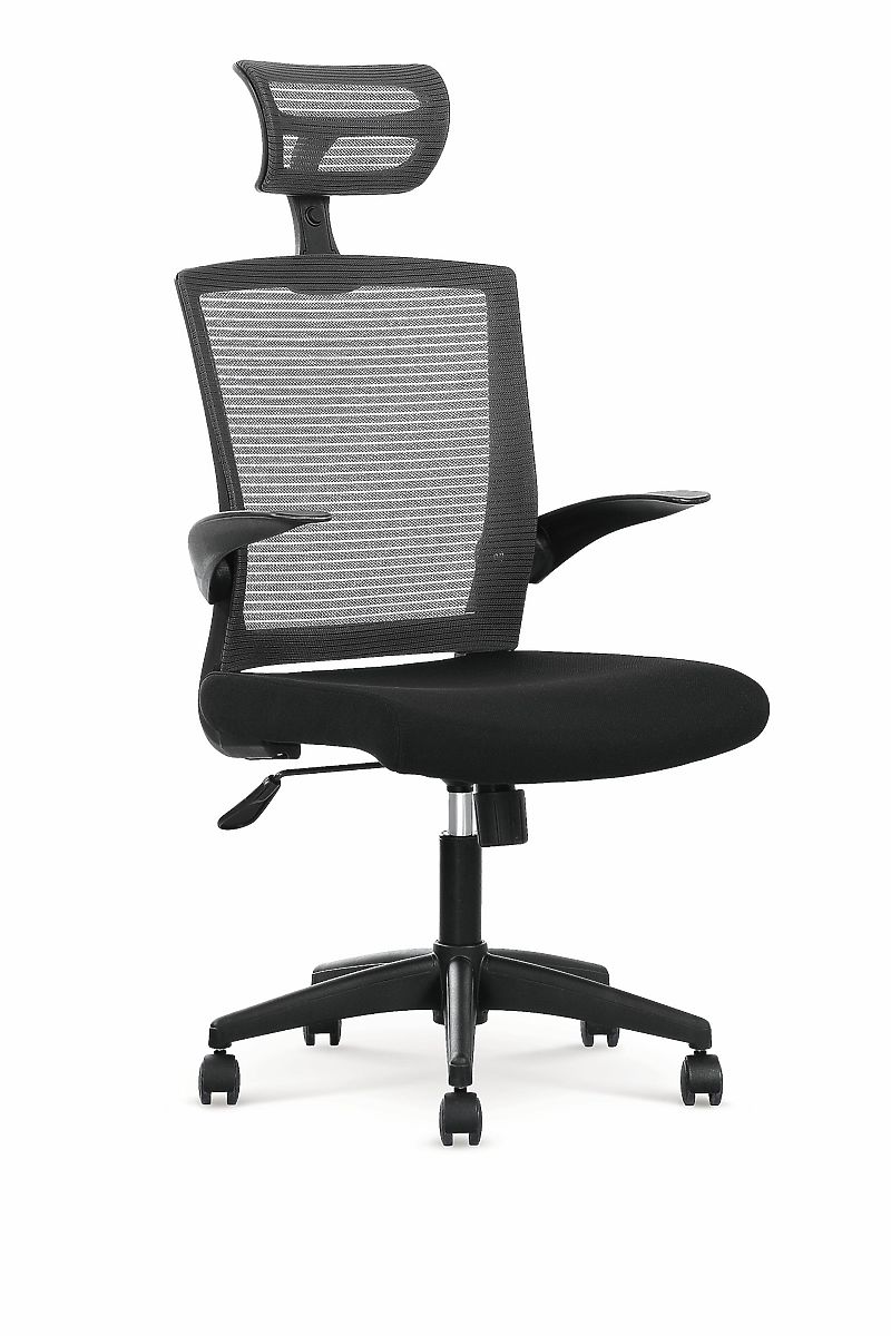 La mécanique TILT permet un réglage facile de la hauteur de la chaise avec la possibilité de verrouillage en position de base et de réglage de la rigidité du dossier. La structure de la chaise est en nylon solide et roulettes en plastique, adaptées à toutes les surfaces. Un avantage lors de l'utilisation est les accoudoirs rabattables.