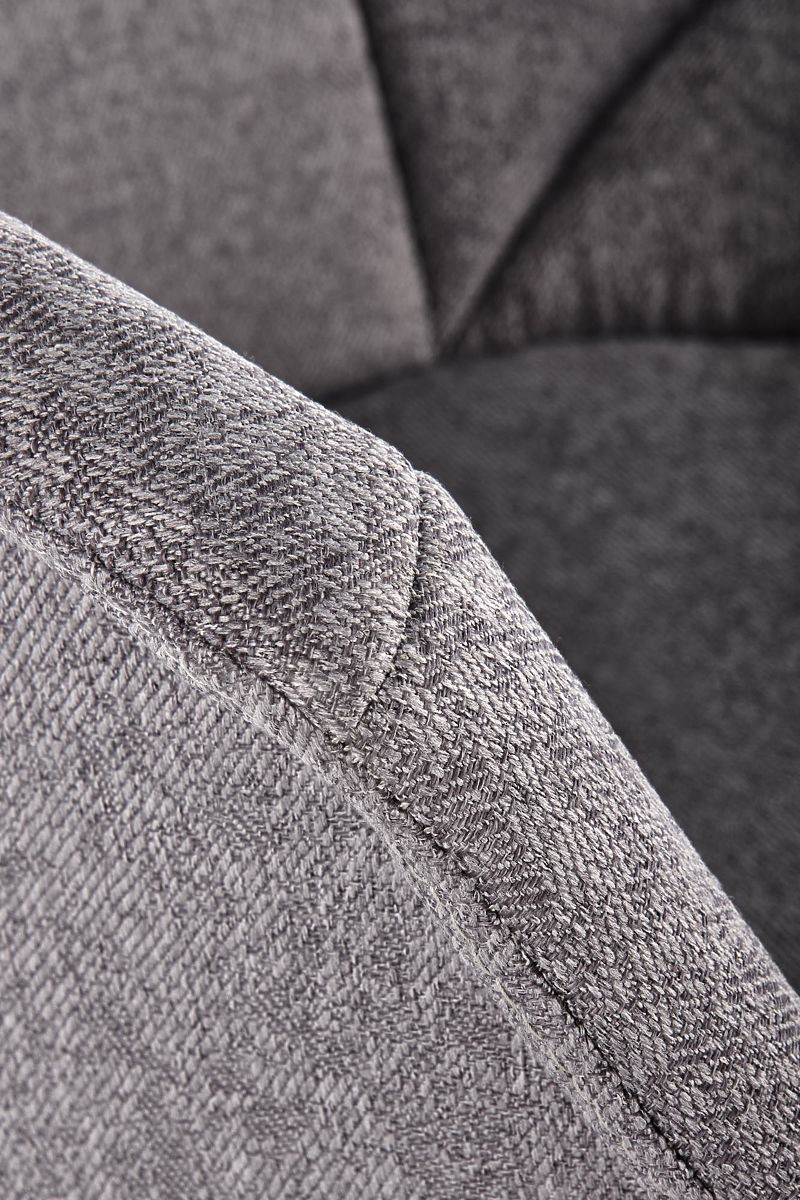 L'assise et le dossier sont recouverts d'un tissu agréable de couleur grise. La structure est fabriquée en acier peint par poudrage de couleur noire.