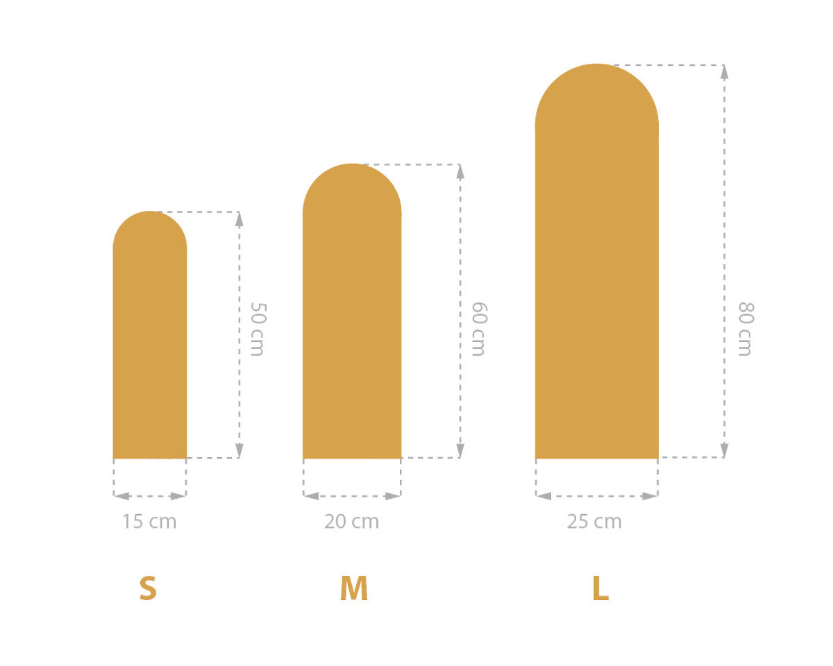 Les panneaux rembourrés de couleur moutarde sont disponibles en trois tailles différentes :