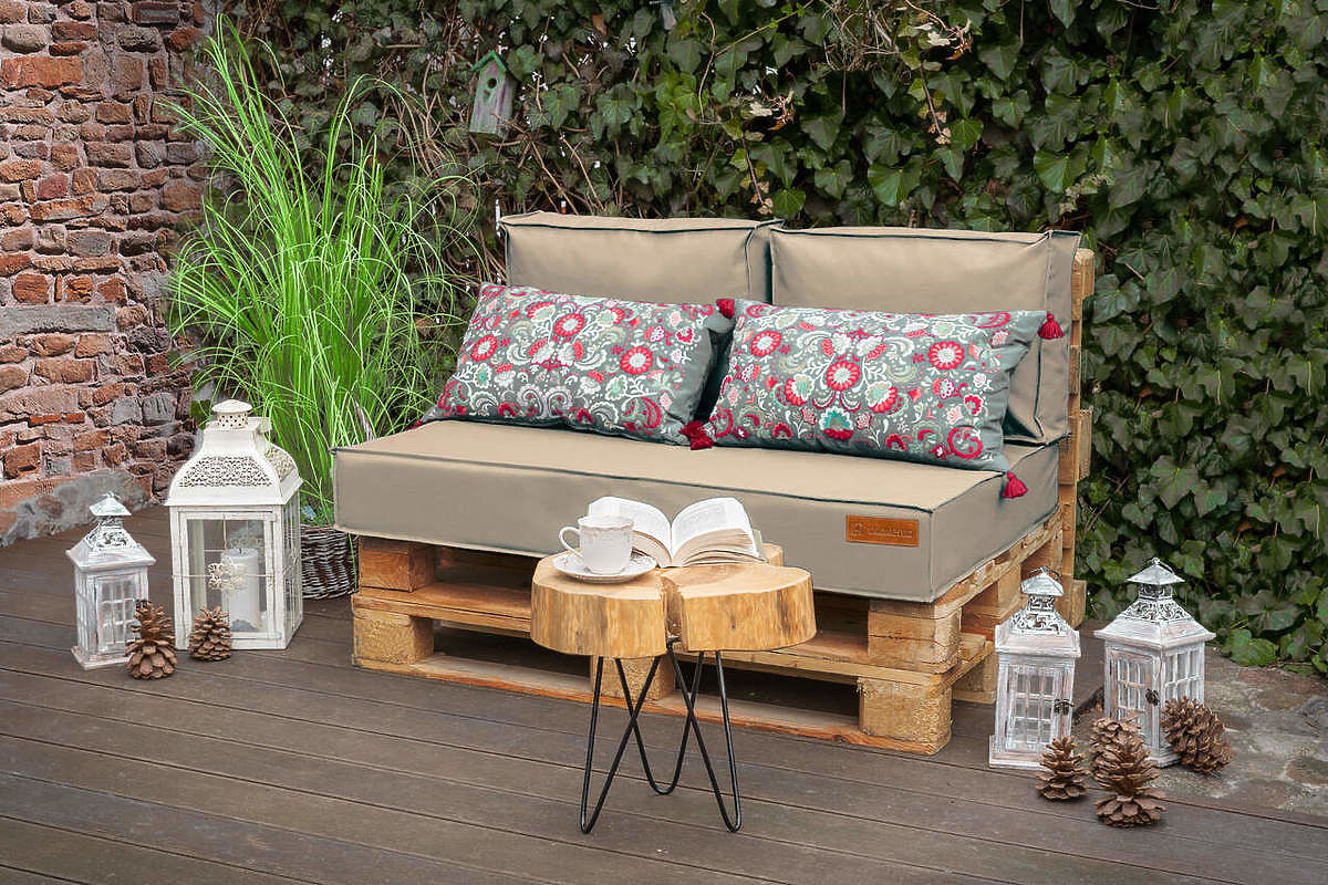 L'ensemble de coussins beige pour meubles en palette est un excellent choix pour améliorer facilement l'assise sur la terrasse, le balcon ou dans le jardin. Idéalement préparé pour les dimensions de l'Europalette. La technologie de couture spéciale assure la résistance aux UV et à l'eau du matériau, grâce à quoi le matériau reste solide et ne se décolore pas.