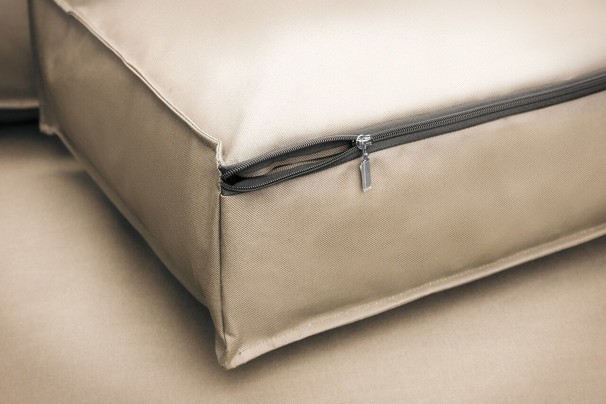Les coussins sont en mousse PUR, résistante aux infiltrations. La housse peut être retirée et lavée.