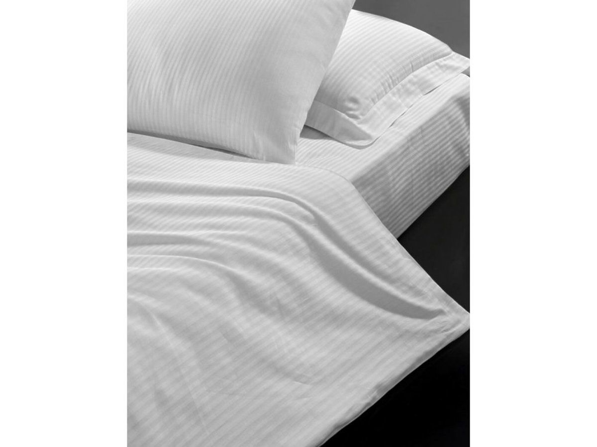 La literie blanche Atlas Gradl est une literie de type hôtelière de haute qualité. Ce drap de lit présente des rayures horizontales d'une largeur de 4 mm, .. plus