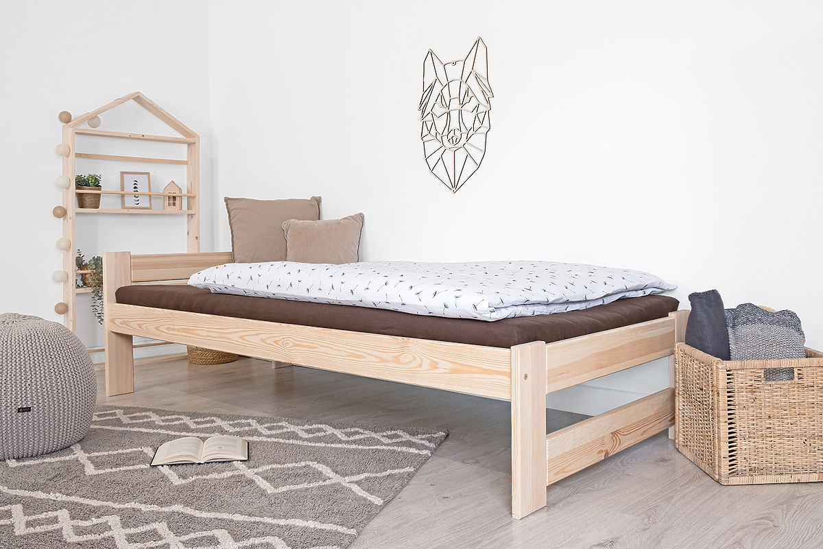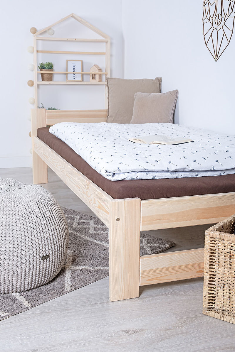 Le lit laqué Mel 200x90 est conçu pour apporter de l'authenticité à votre intérieur. Chaque pièce du lit est fabriquée à partir de bois de pin soigneusement sélectionné, qui a été minutieusement traité avec un vernis pour mettre en valeur son aspect naturel et sa texture. Ce vernis protège également le bois contre les influences extérieures et prolonge sa durée de vie.