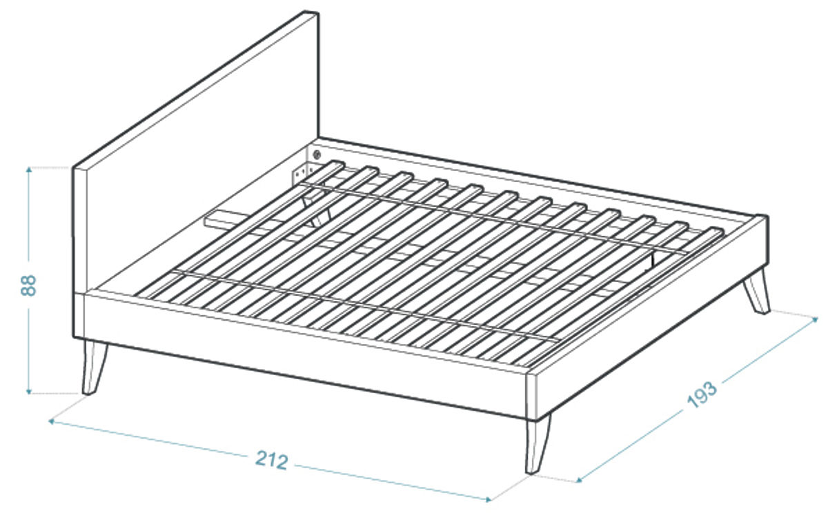 La structure du lit est constituée de panneaux de meubles de haute qualité , ce qui signifie qu'elle est durable et facile à nettoyer. Un sommeil confortable et le soutien du matelas seront assurés par le cadre de lit, qui est constitué de lattes flexibles en bouleau , qui offrent un soutien suffisant.