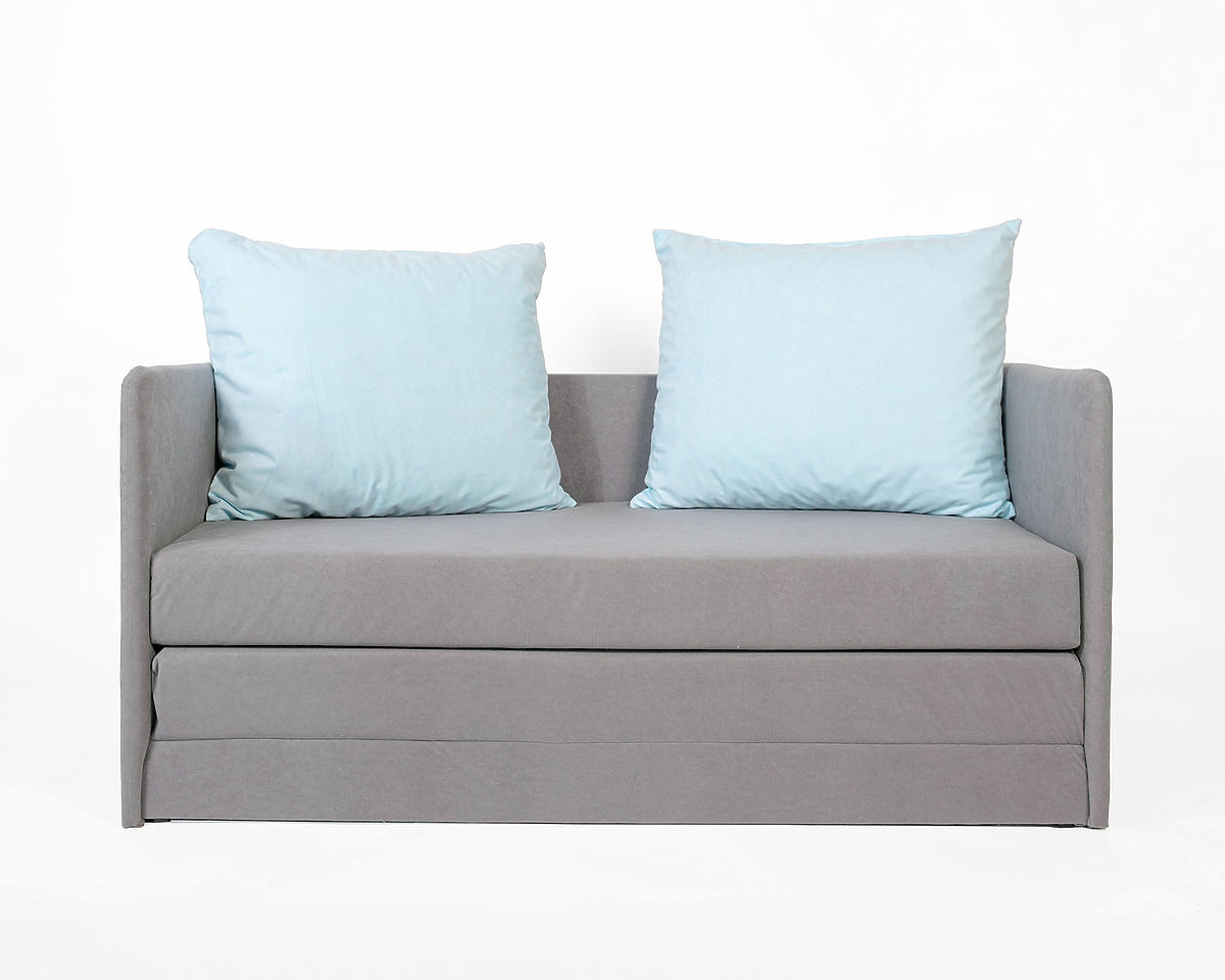 Canapé Jack gris foncé avec coussins bleu clair pour chambre d'enfant. .. plus