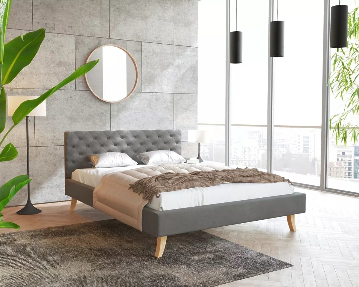 Le matériau de revêtement du lit en tissu est le velours Trinity gris foncé. Il se distingue par sa structure fine et sa haute résistance, même contre les rayons du soleil. Il est doux, moelleux et agréable au toucher. Il est également très résistant à l'abrasion et au boulochage. Vous serez séduit par son apparence moderne et les coutures décoratives de la tête de lit.
