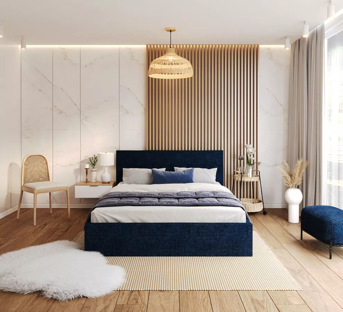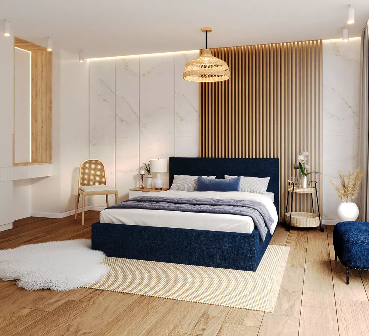 L'élégant lit rembourré TULSA de couleur bleu foncé et mesurant 120 x 200 cm est un beau meuble qui offre non seulement un confort de sommeil, mais qui ajoute également du style à la chambre grâce à son design intemporel et à sa finition attrayante. Le bleu foncé est une couleur associée au calme, à la confiance et à l'élégance. Cette couleur peut créer une atmosphère apaisante et donner à la chambre une sensation de bien-être. La tête de lit rembourrée ajoute douceur et élégance à l'espace, tandis que sa taille offre suffisamment d'espace pour que deux personnes puissent dormir confortablement.