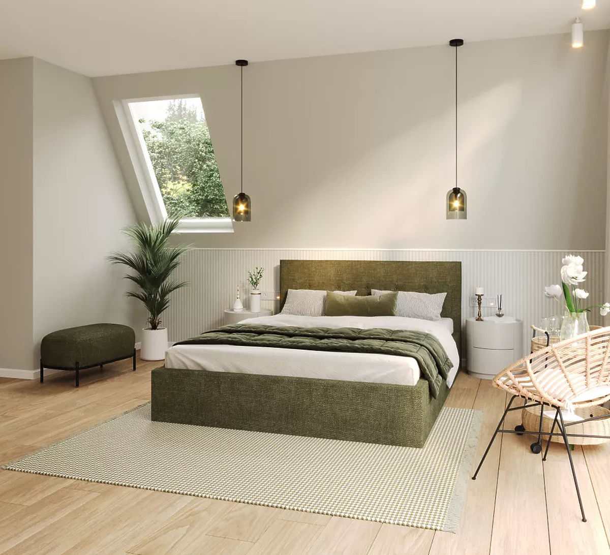 Le lit TULSA de couleur vert olive et de dimensions 180 x 200 cm offre certainement une belle combinaison d'élégance et de confort pour votre chambre. La taille du lit offre suffisamment d’espace pour bouger librement pendant la nuit, ce qui est essentiel pour un sommeil de qualité, en particulier pour les couples. Un espace suffisant permet aux deux partenaires de dormir confortablement et sans aucune restriction. La couleur vert olive apporte paix et harmonie à la pièce, ce qui est un excellent moyen de créer un environnement relaxant dans votre chambre.