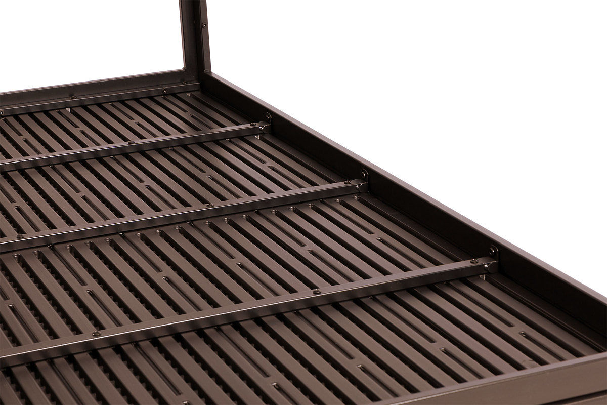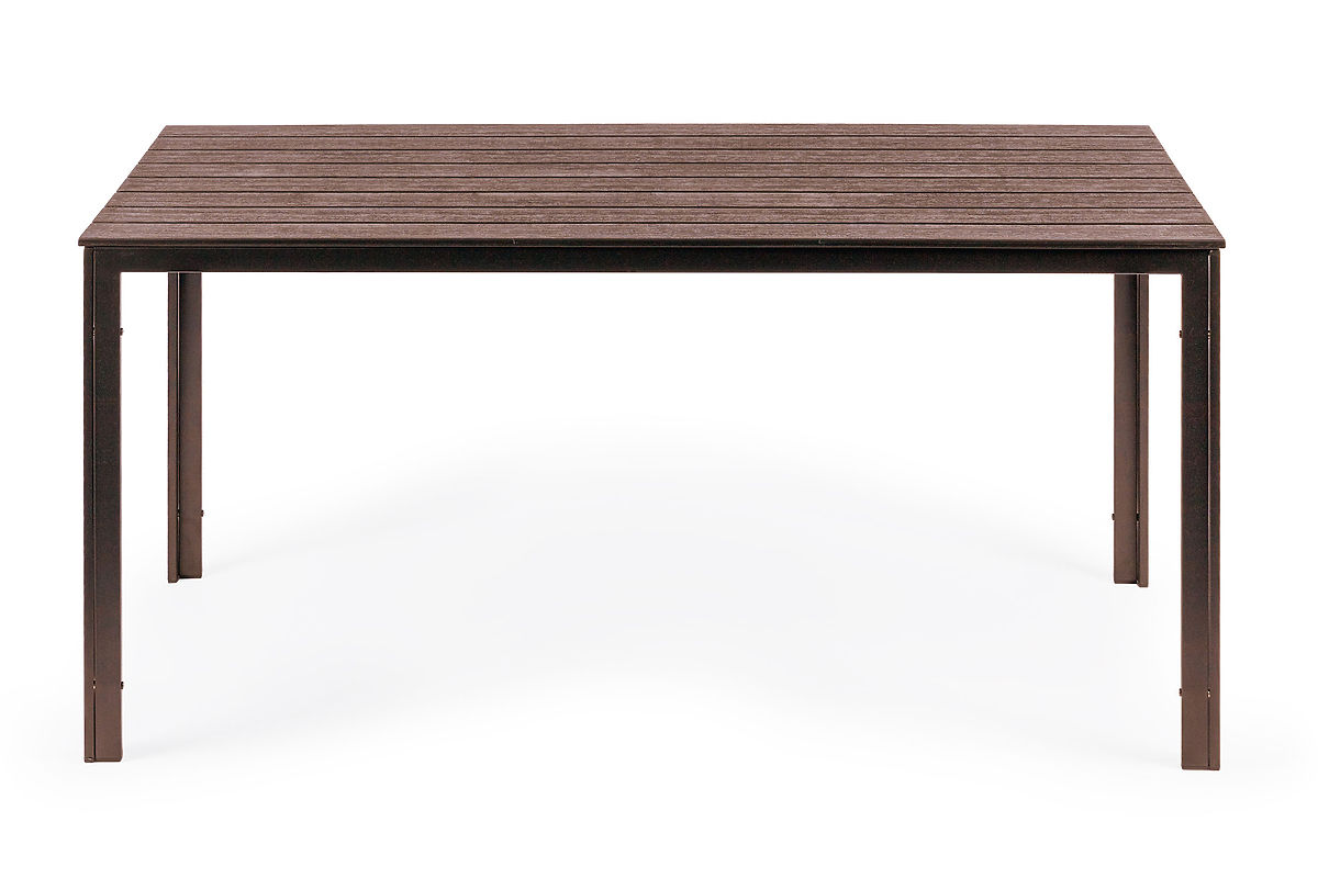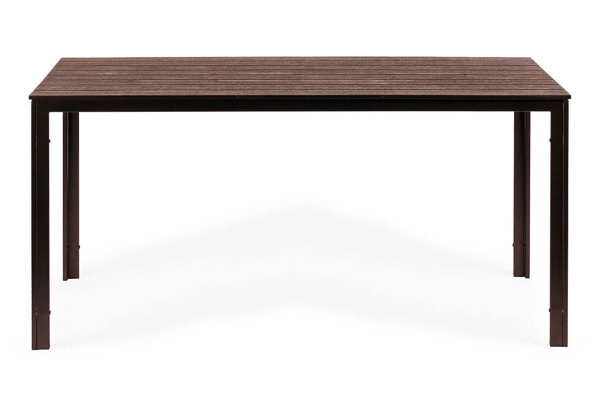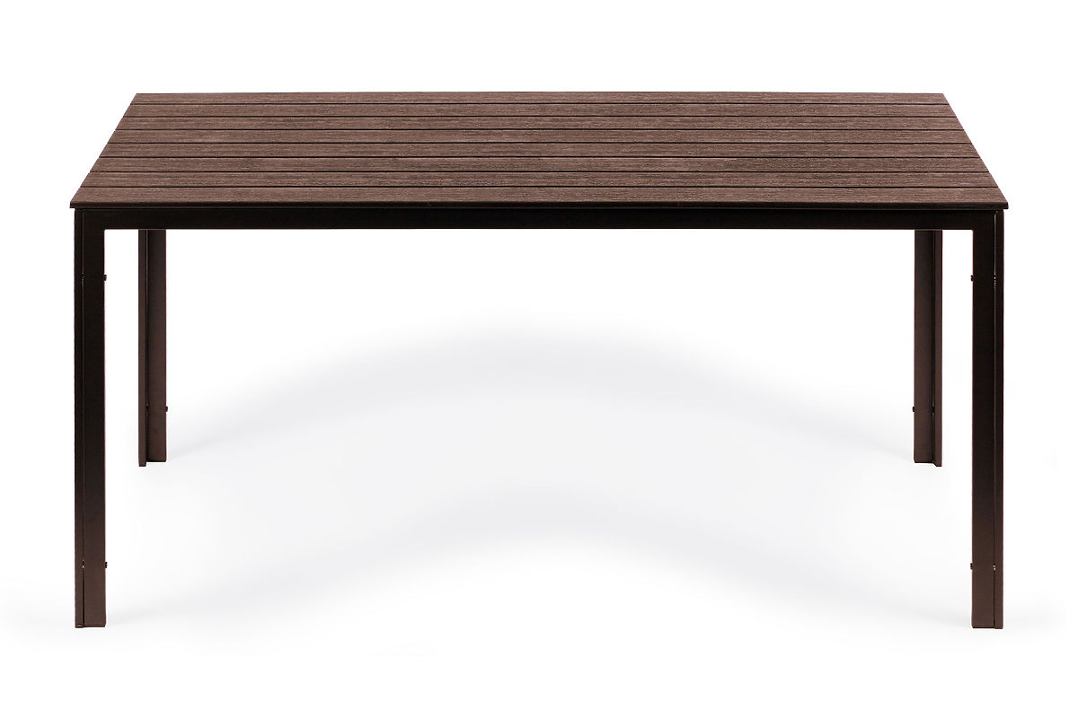 La table de jardin BASIC est constituée de profilés métalliques, grâce auxquels toute la structure est stable et ne se déforme pas comme les tables en plastique. Le plateau de la table est doté de profils transversaux supplémentaires en dessous, qui lui confèrent une rigidité et assurent une résistance adéquate. La surface du plateau est recouverte d'un motif imitant la texture du bois.