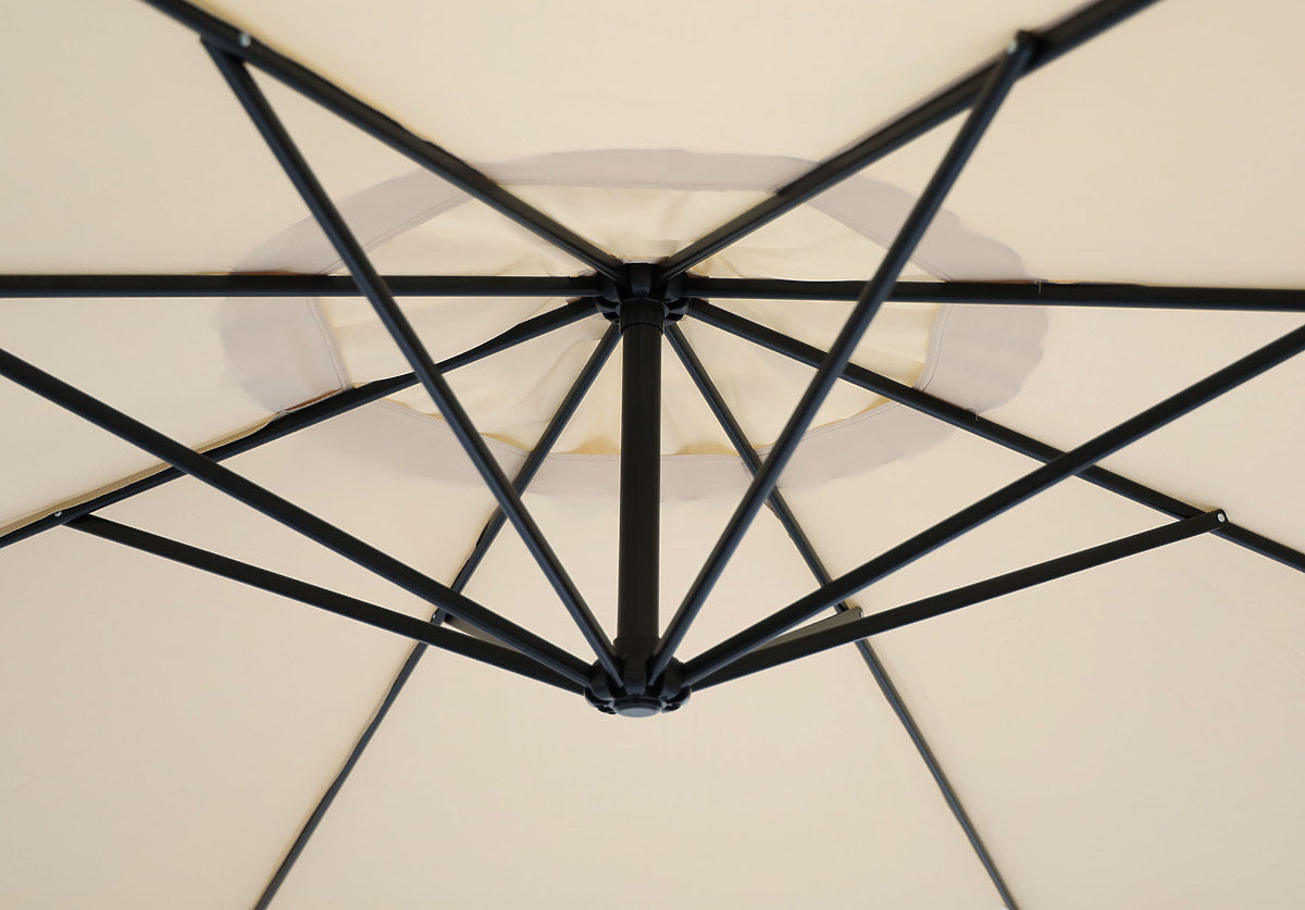 La conception du parasol vous permet d’incliner la verrière par rapport au soleil. C'est une option particulièrement utile les jours ensoleillés, grâce à laquelle le parasol crée une ombre encore plus agréable. Cette fonctionnalité vous permettra d'adapter parfaitement la position du parasol à la position du soleil et de créer une zone d'ombre agréable dans votre jardin ou terrasse.