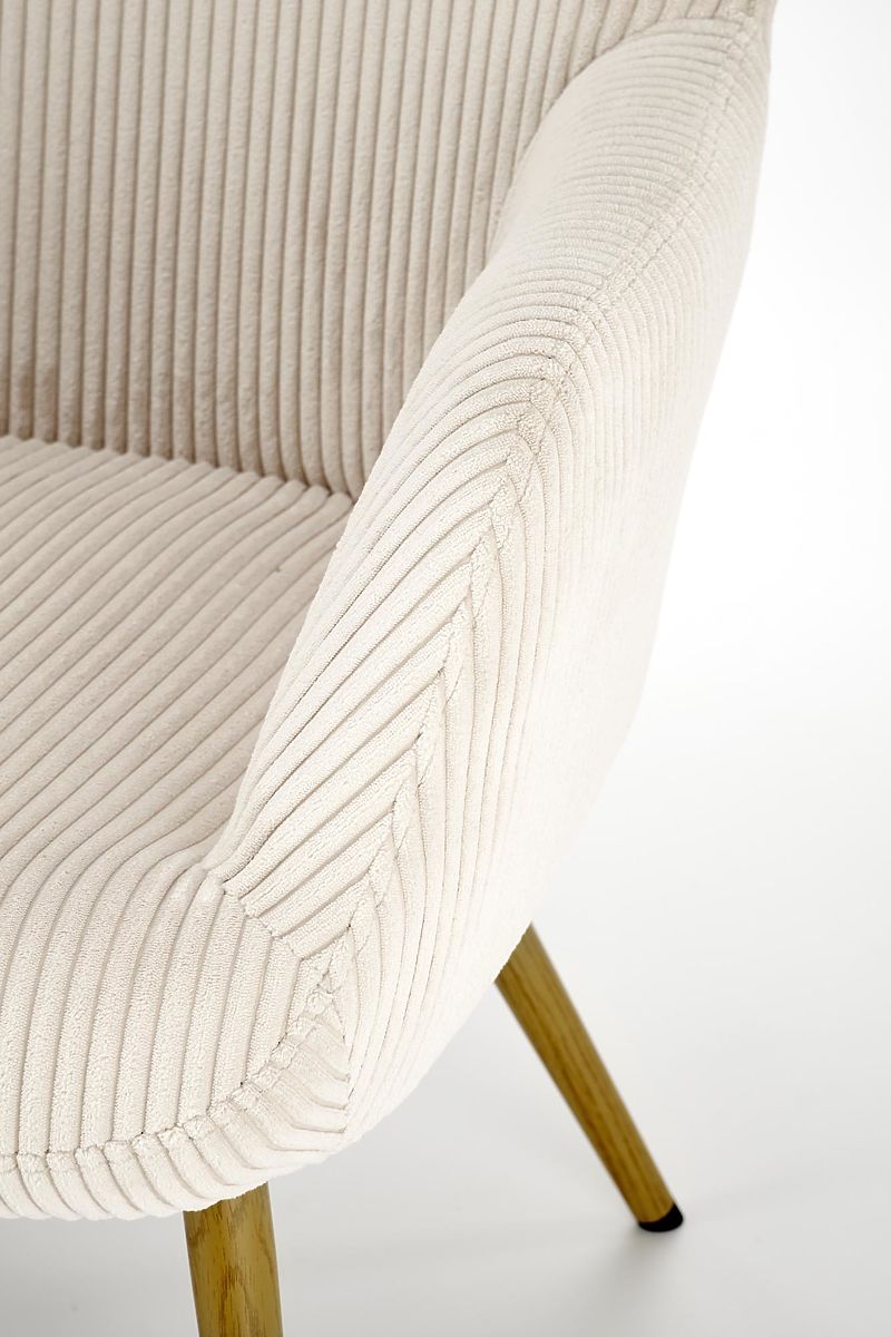 Le velours côtelé de couleur crème donne à la chaise un aspect à la fois doux et sophistiqué. Ce tissu est non seulement agréable au toucher, mais également résistant et facile d'entretien, assurant ainsi une longue durée de vie à votre chaise.