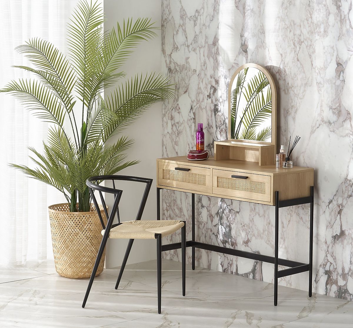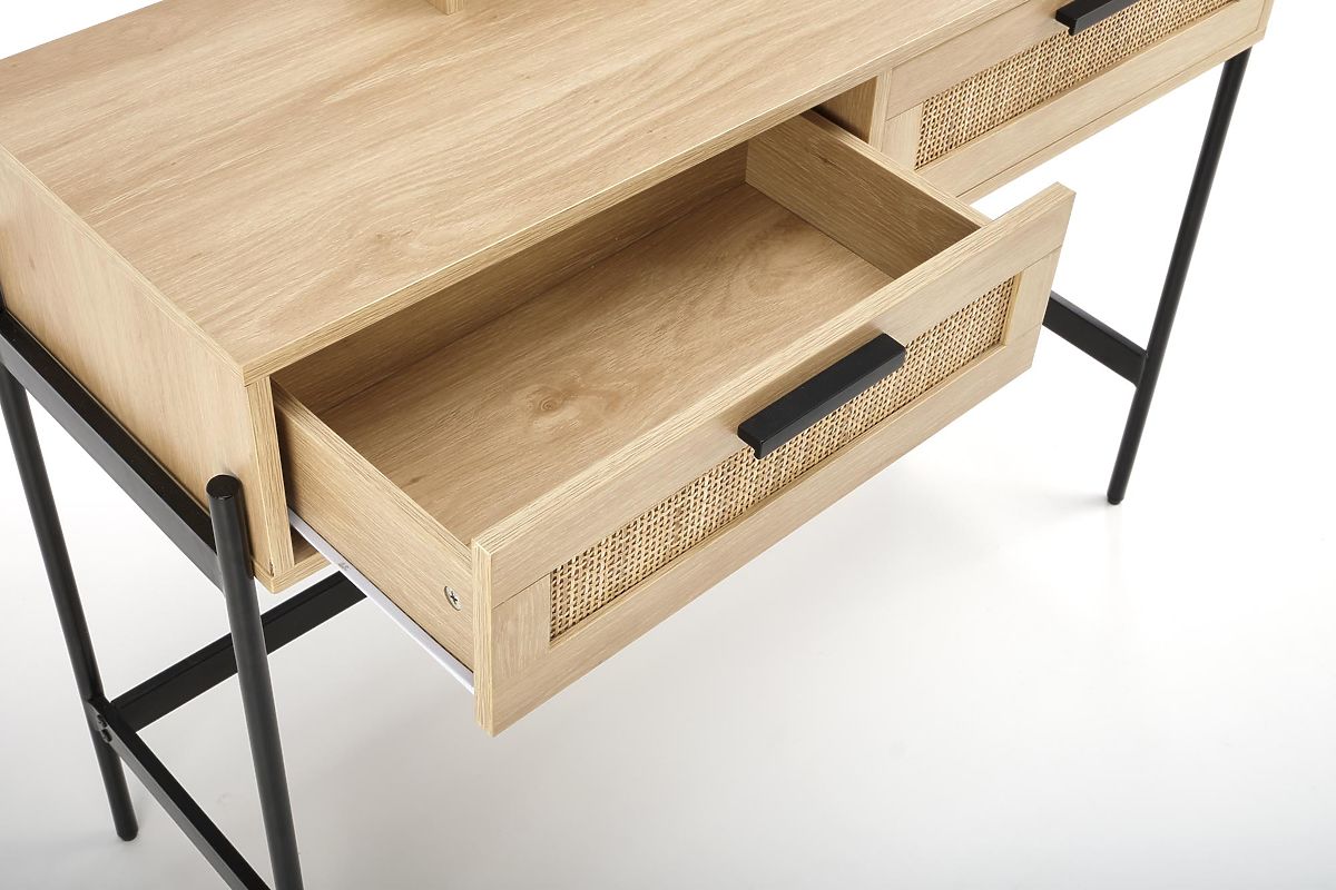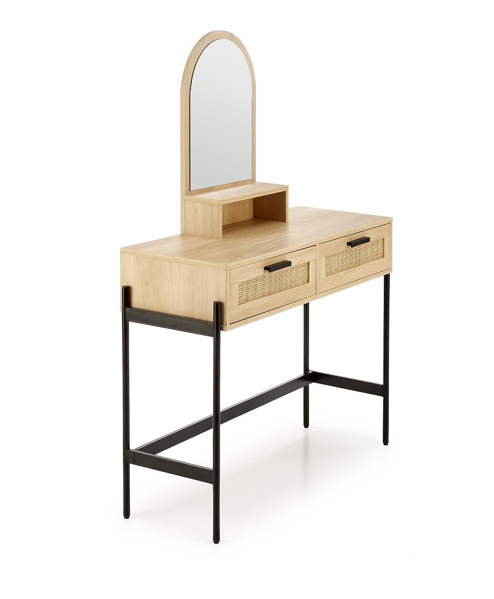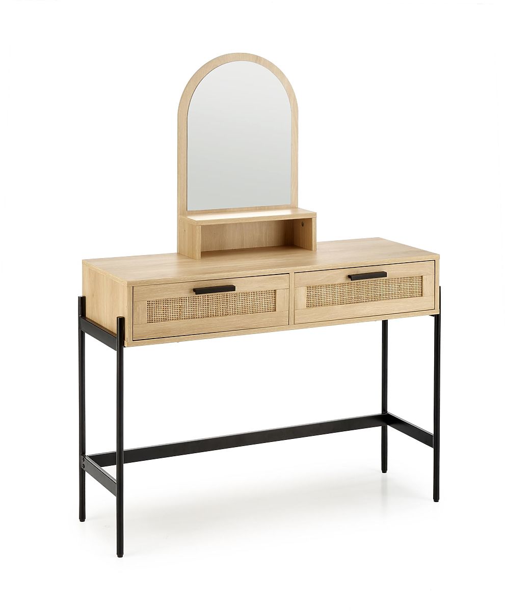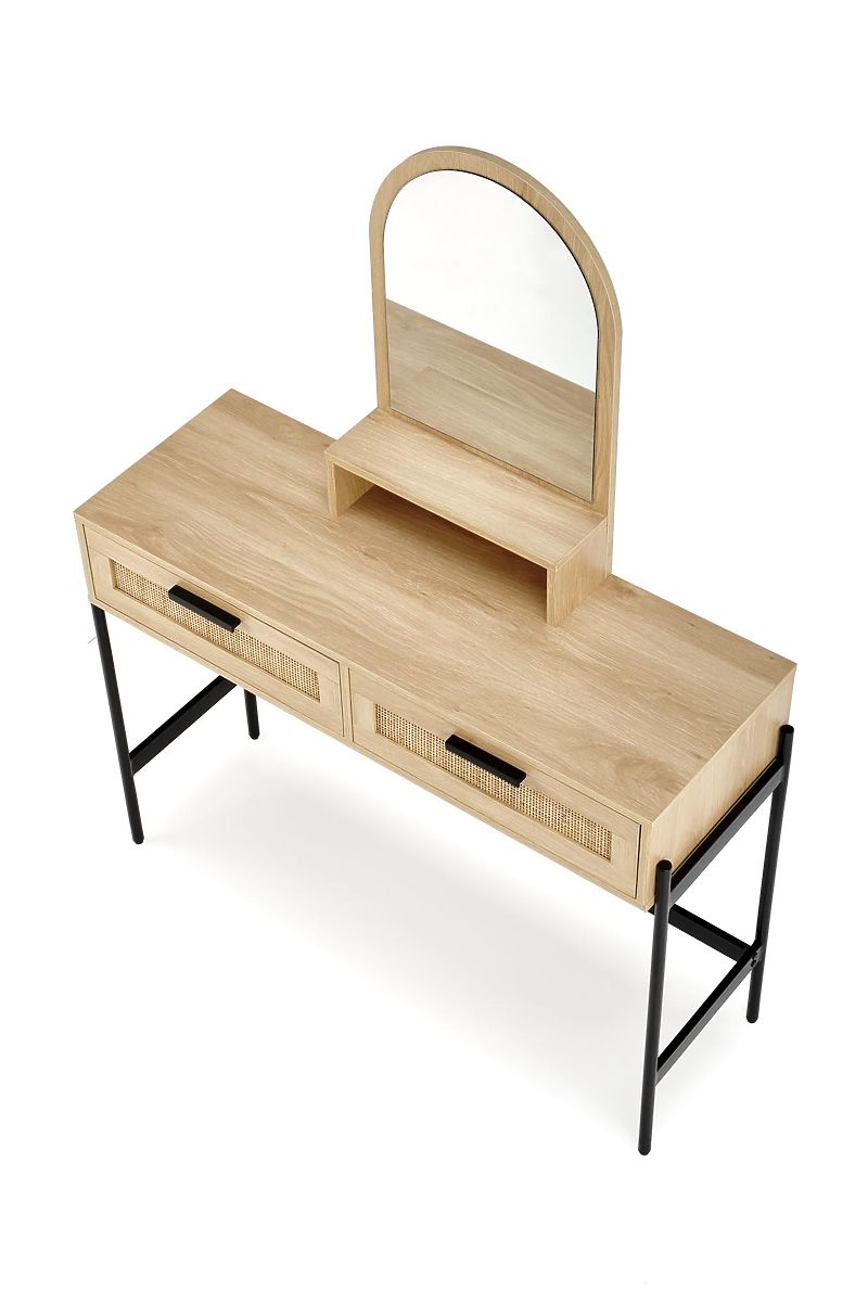 La table est équipée de deux tiroirs fermables et d'un miroir pratique, qui vous permet d'effectuer confortablement vos soins cosmétiques et votre maquillage. Cette table en rotin créera l'espace parfait pour vos soins de beauté personnels.
