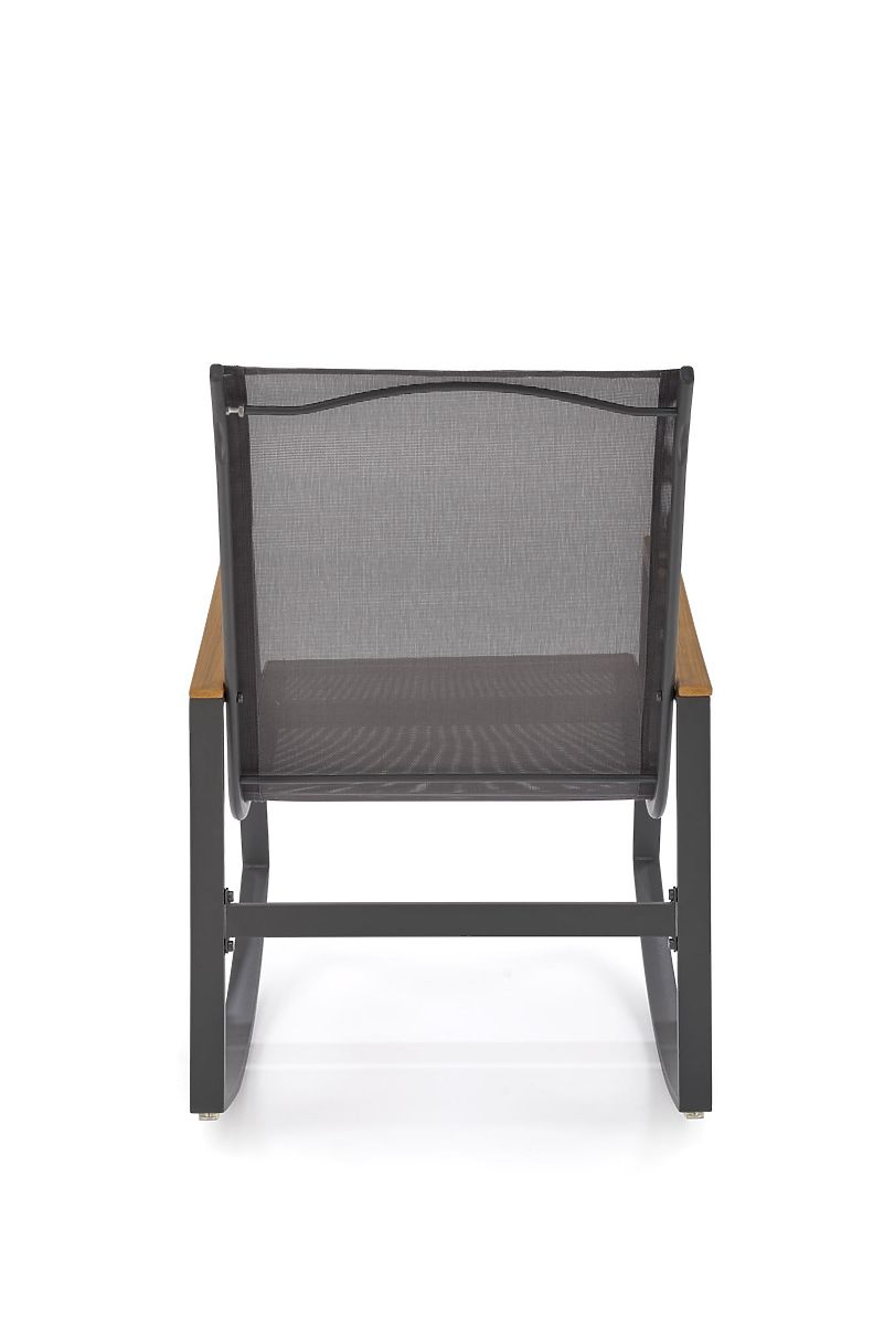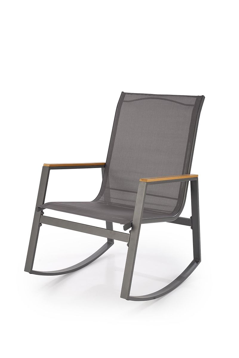 Le fauteuil à bascule au design gris universel s'intègre parfaitement dans n'importe quel jardin, terrasse ou balcon.