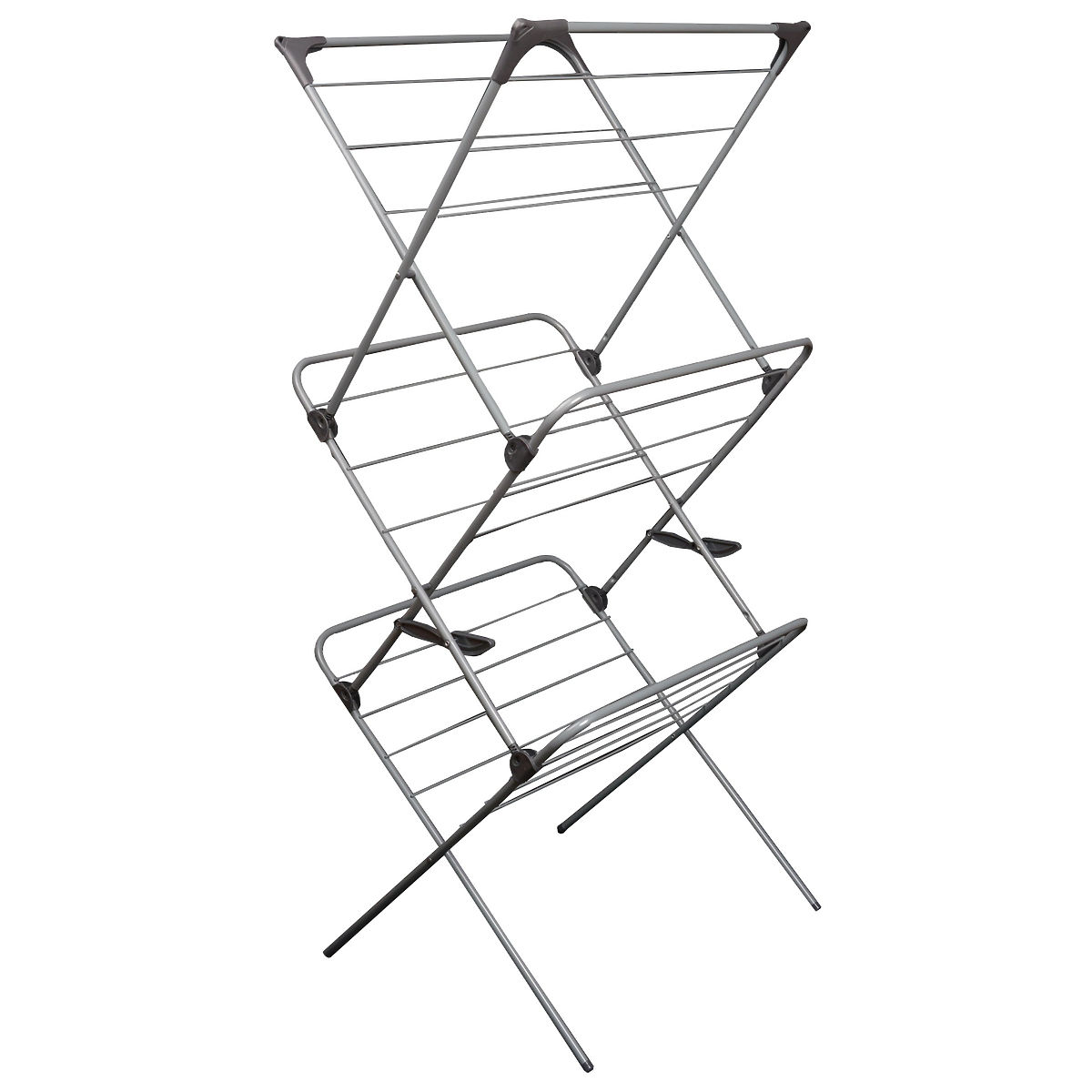 Le séchoir vertical est la solution idéale pour économiser de l'espace. Ses dimensions compactes permettent de le placer dans les baignoires et les douches. Grâce à ses 3 niveaux, il peut accueillir environ 15 mètres de linge. Le séchoir est équipé de verrous anti-pliage spontané et ses charnières sont fixées avec des rivets métalliques.