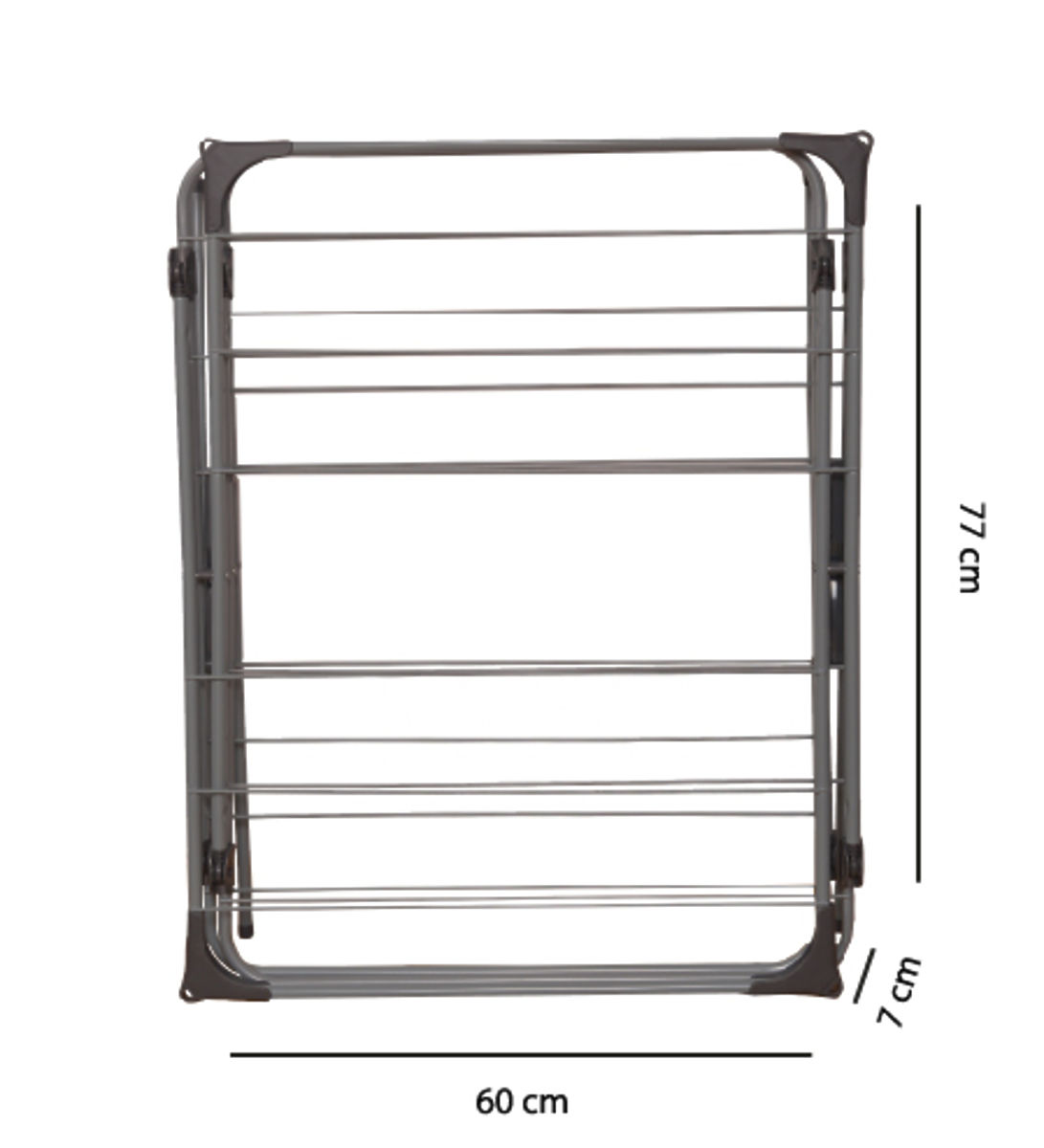 CONSTRUCTION PLIABLEUne caractéristique très importante du séchoir est sa taille une fois plié. Le séchoir vertical se plie à des dimensions réduites de 7x60x77cm. Cette taille permet un rangement facile dans une armoire ou un petit entrepôt. Il suffit de 15 secondes pour déplier ou plier le séchoir.