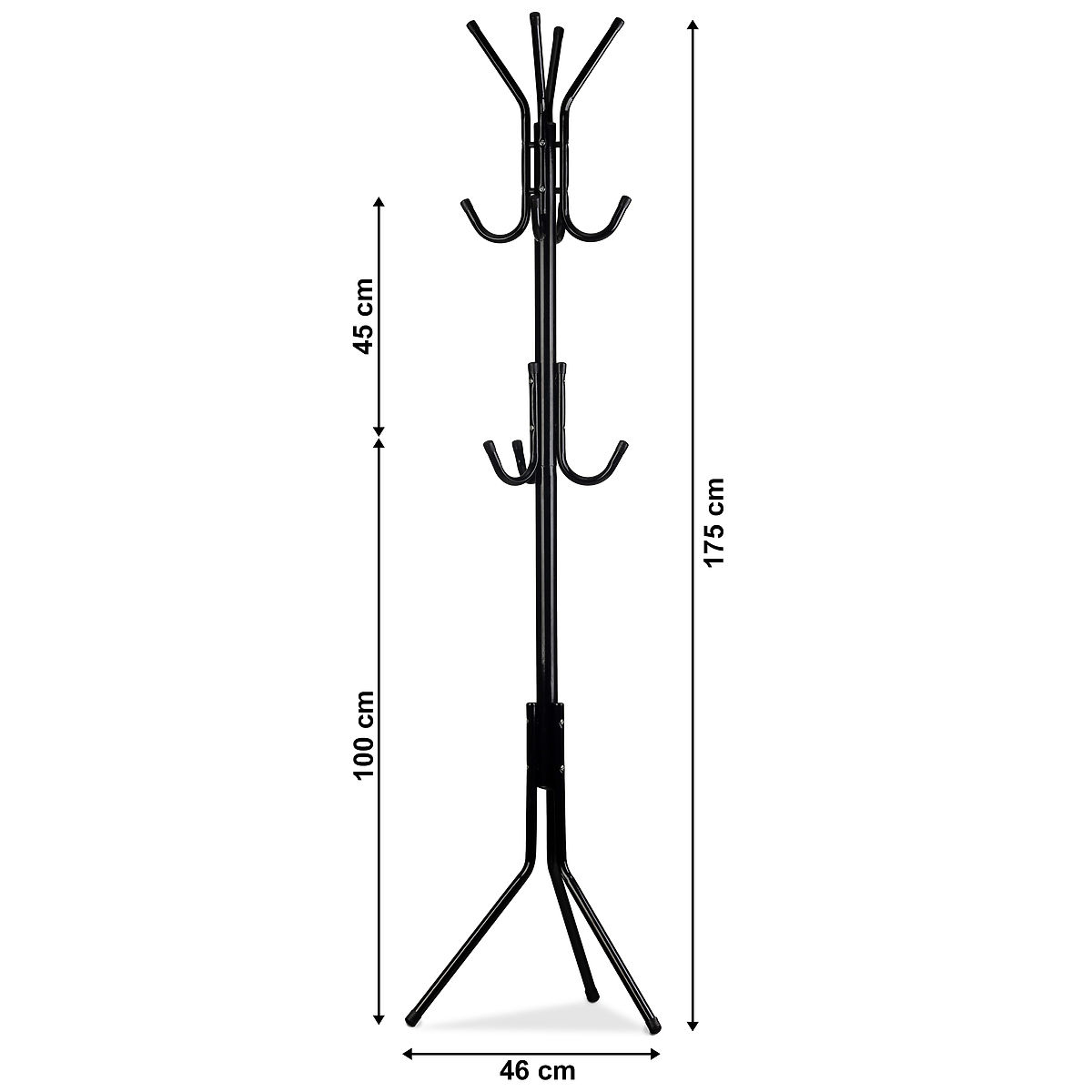BEAUCOUP D'ESPACE POUR LES VÊTEMENTSLa partie supérieure comporte quatre bras sur lesquels deux vestes peuvent être suspendues. À mi-hauteur, il y a d'autres crochets, adaptés pour les chapeaux, parapluies ou sacs.
