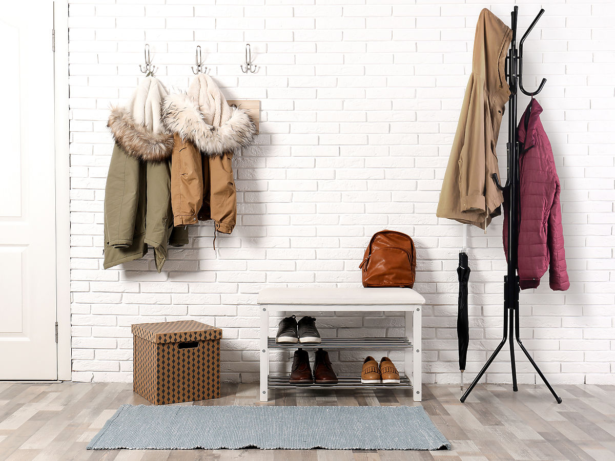 De plus, les crochets à cette hauteur peuvent servir à suspendre des couvre-chefs ou des parapluies, les gardant toujours à portée de main.