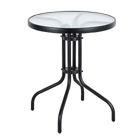 TABLE DE JARDIN BIEN CONÇUELa table peut accueillir 4 personnes grâce à son grand plateau de 60 cm de diamètre, fabriqué en verre trempé. Ce matériau est résistant aux rayures, aux salissures et est difficile à endommager. Les bords de la table sont entourés d'un cadre noir qui ajoute un caractère moderne.