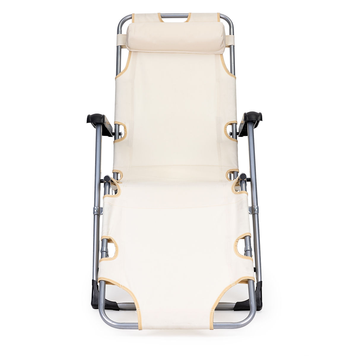 Chaise longue de jardin et de plage 2 en 1 avec appui-tête et structure pliable. .. plus