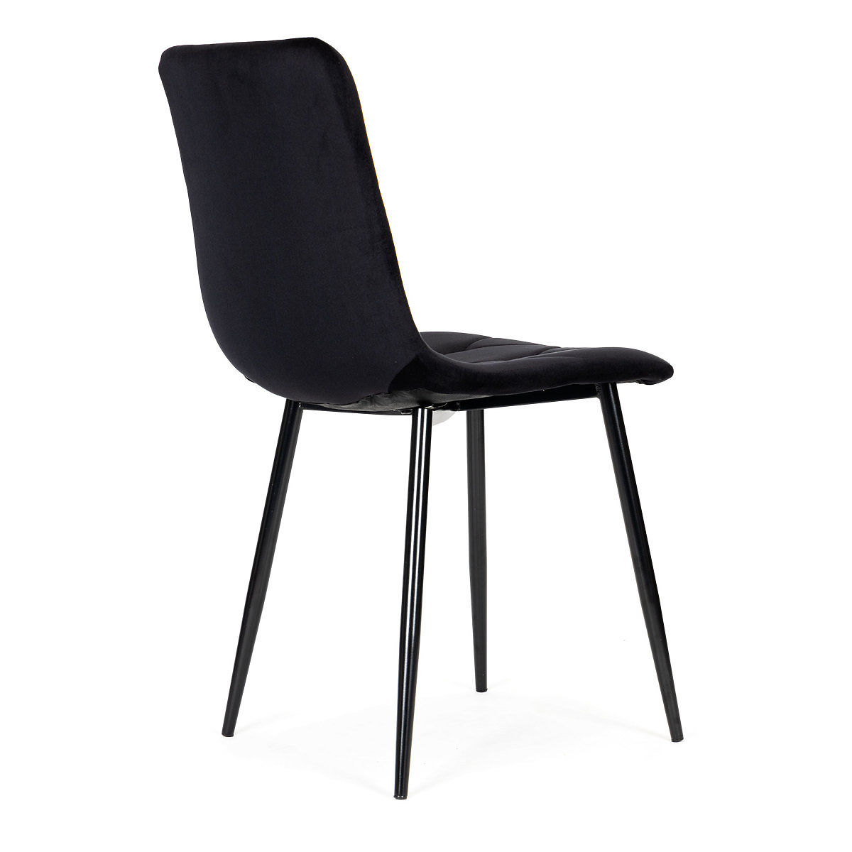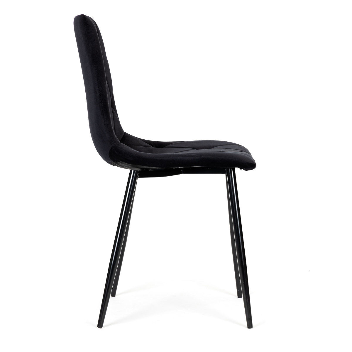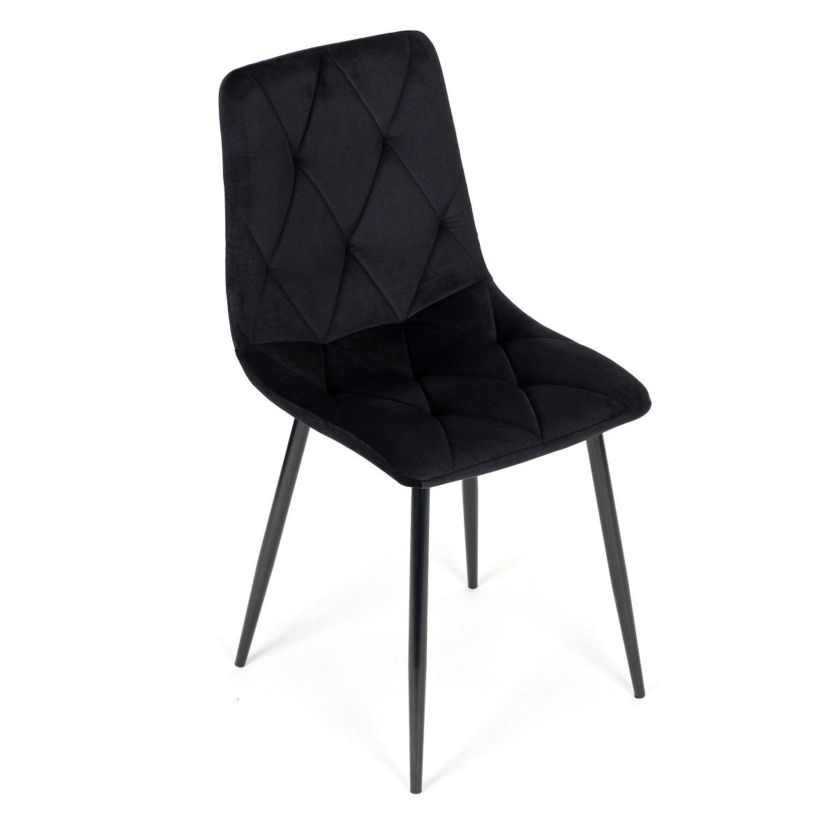 Chaises en velours noir matelassé avec pieds en acier pour un design élégant et moderne. .. plus
