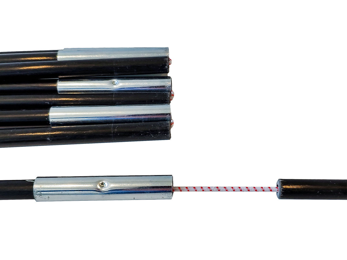 La structure du pavillon est composée de tubes croisés en fibre de verre, ce qui la rend légère et résistante.