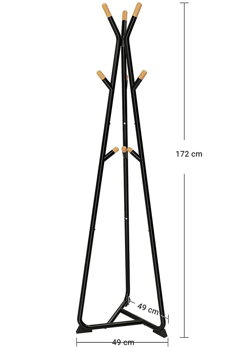 Ce produit peu encombrant a une base triangulaire stable, ce qui nous assure que le produit ne basculera pas avec une charge supplémentaire. De plus, le produit est équipé de 9 crochets arrondis en bois de hêtre pour accrocher manteaux, vestes, sacs ou écharpes et chapeaux.