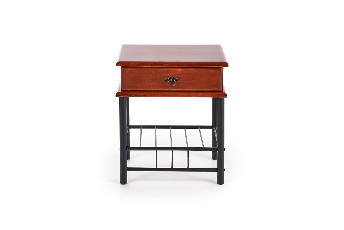Table de nuit vintage en bois massif et acier peint avec finition cerisier antique. .. plus