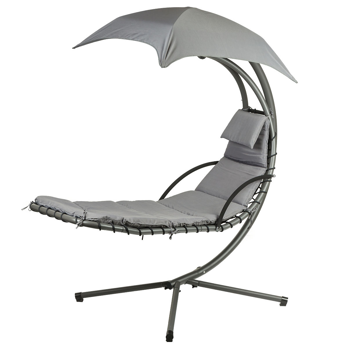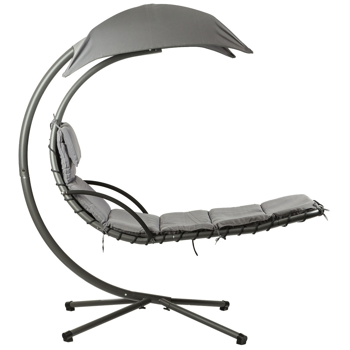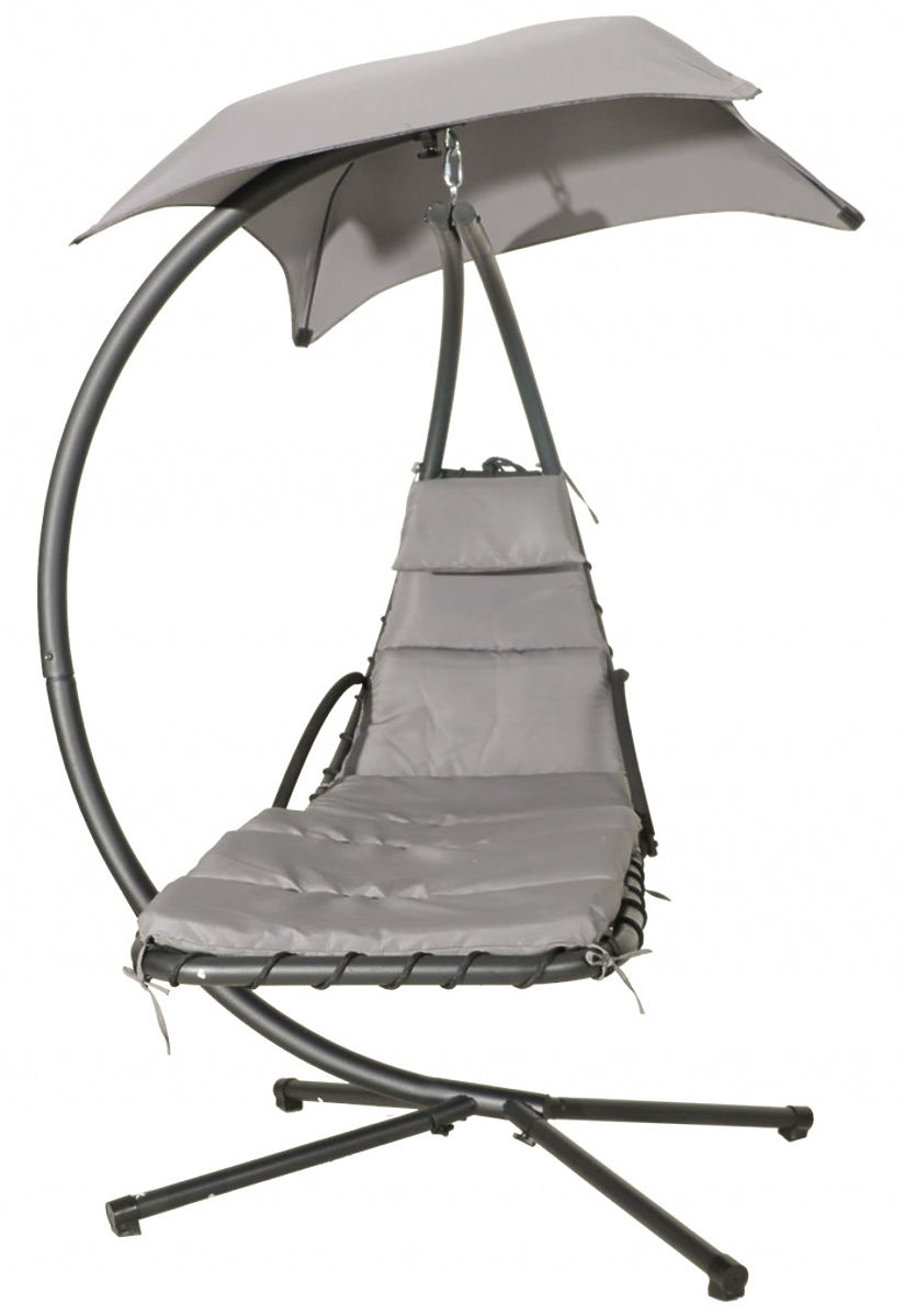 Chaise longue suspendue avec toit réglable et cadre stable. .. plus