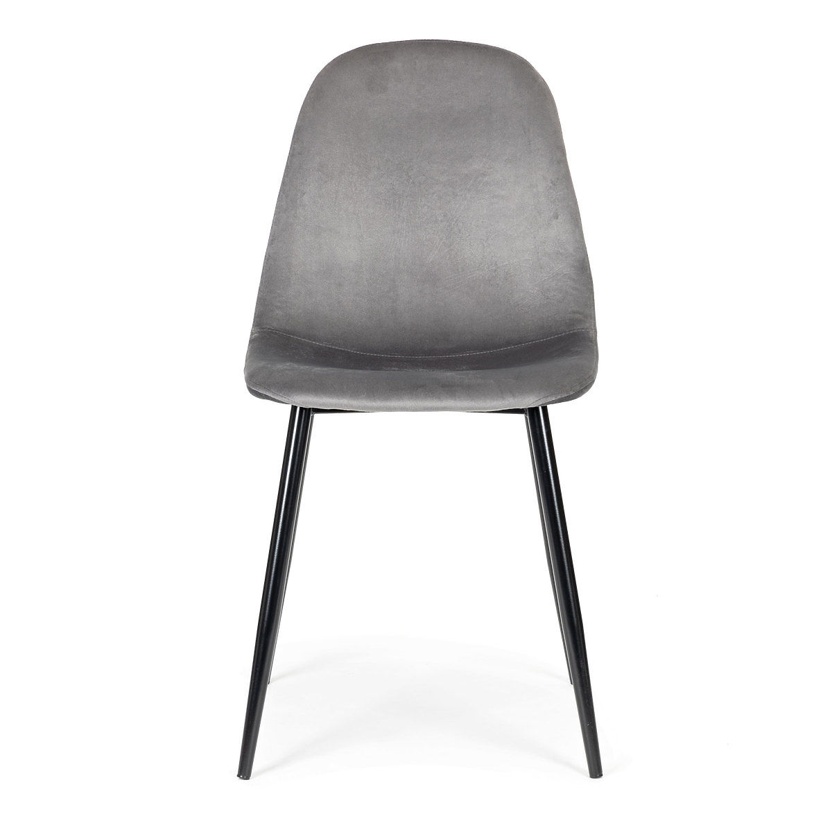 Chaises en velours gris avec dossier profilé et pieds en acier noir. .. plus
