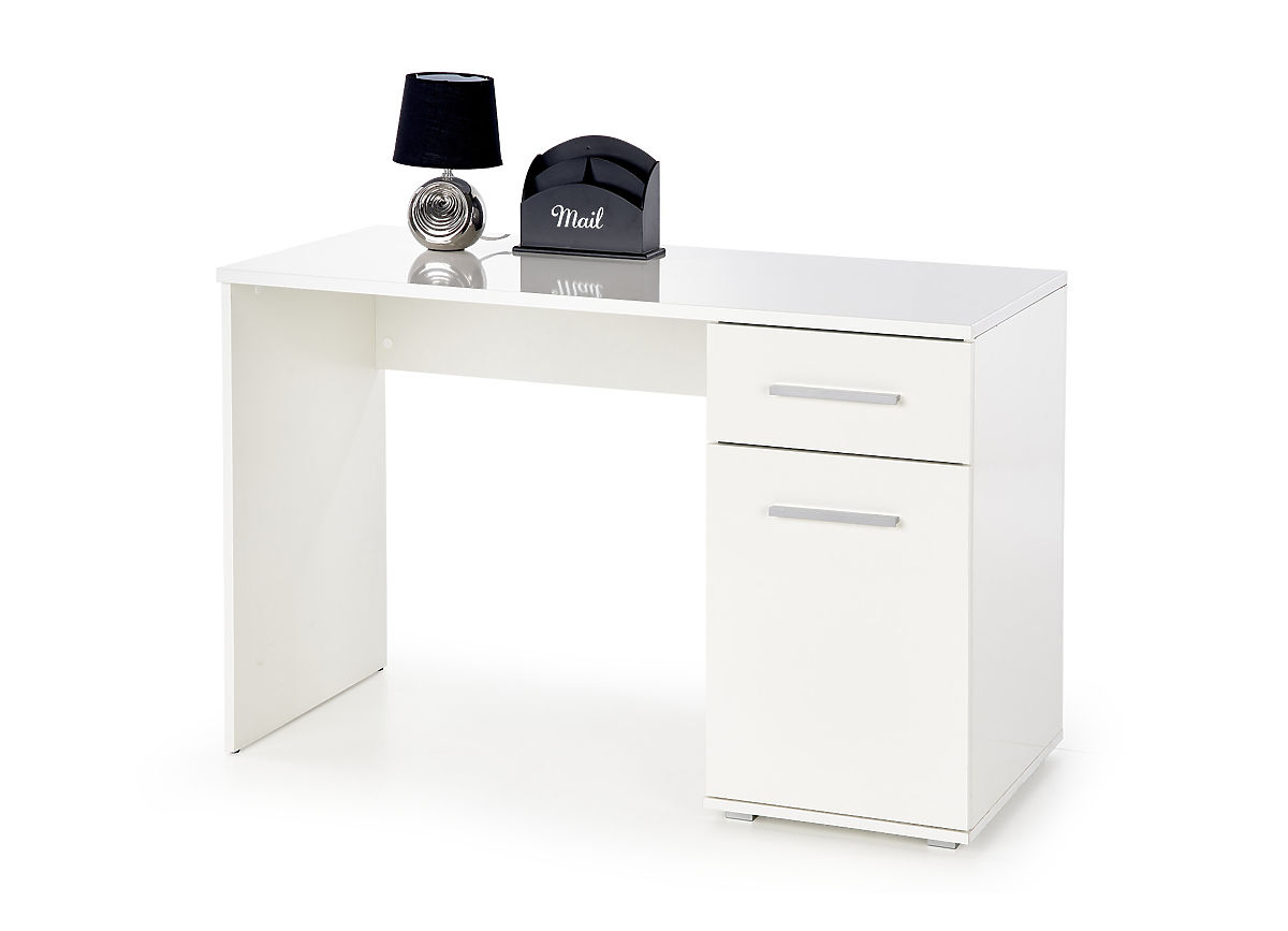 Bureau blanc en panneau laminé avec finition haute brillance. .. plus