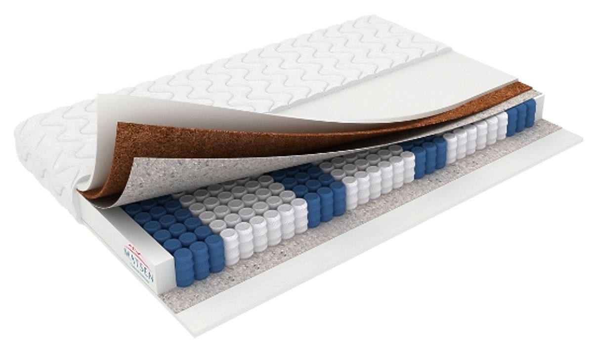 Le matelas Verona est un matelas à ressorts ensachés à 7 zones avec une couche de coco, qui augmente la fermeté et la stabilité de la structure. Grâce à sa conception réversible, vous pouvez choisir le côté plus doux ou plus ferme selon vos préférences. La plaque de coco aide à renforcer le matelas, améliore sa résistance aux déformations et prolonge sa durée de vie. La construction assure une bonne circulation de l'air et un soutien corporel confortable pendant le sommeil.