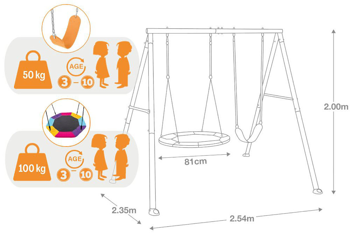 DOUBLE PLAISIRL'aire de jeux offre deux formes de divertissement qui apporteront beaucoup de joie aux enfants.