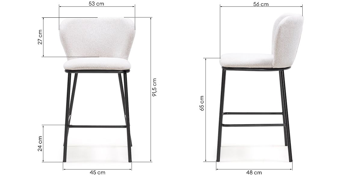 Chaise de bar Yasmin avec tissu doux et pieds en métal noir. .. plus