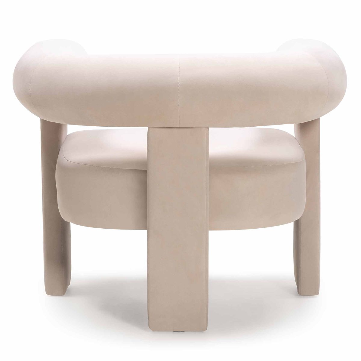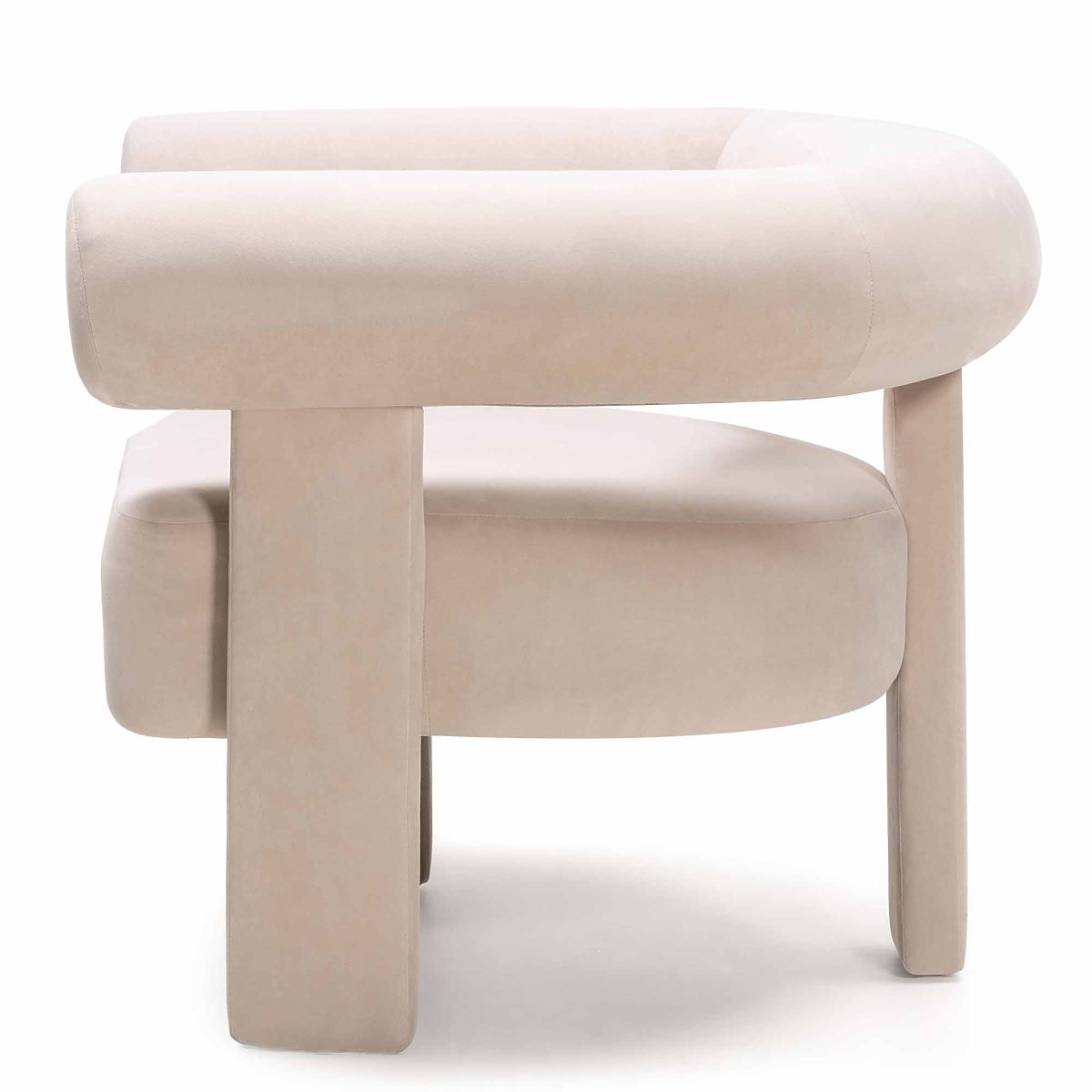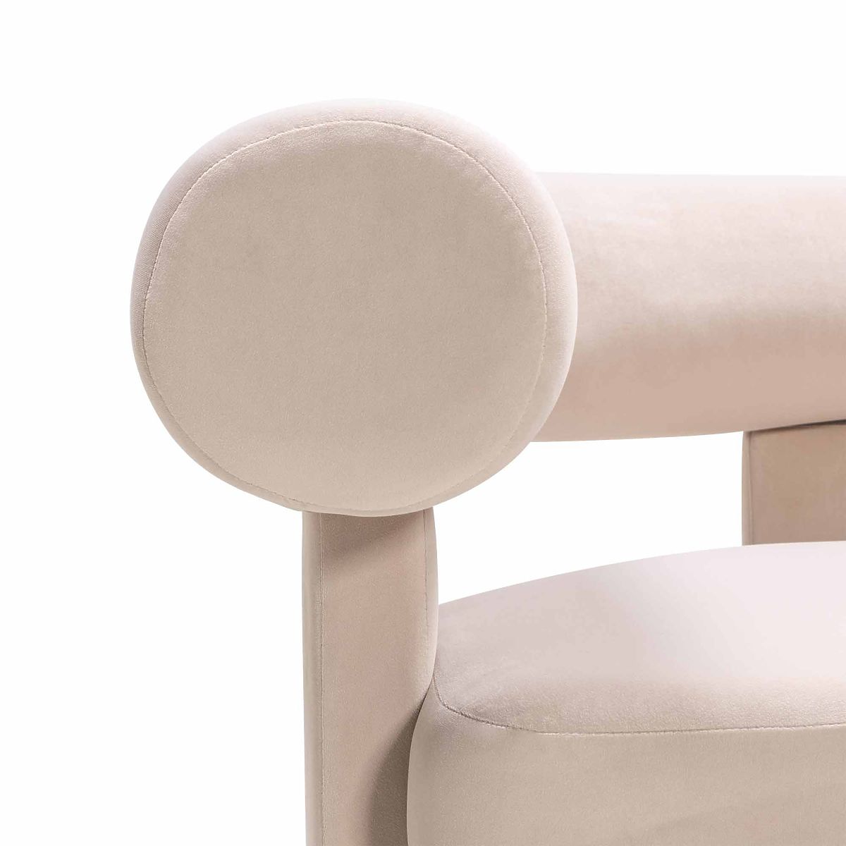 Fauteuil relaxant Hella en velours beige clair avec forme arrondie. .. plus