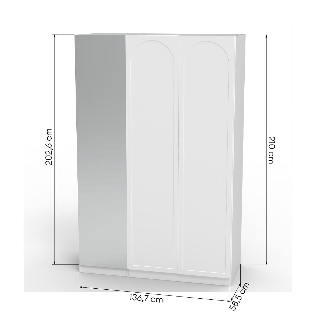 Armoire trois portes avec miroir et arcs décoratifs. .. plus