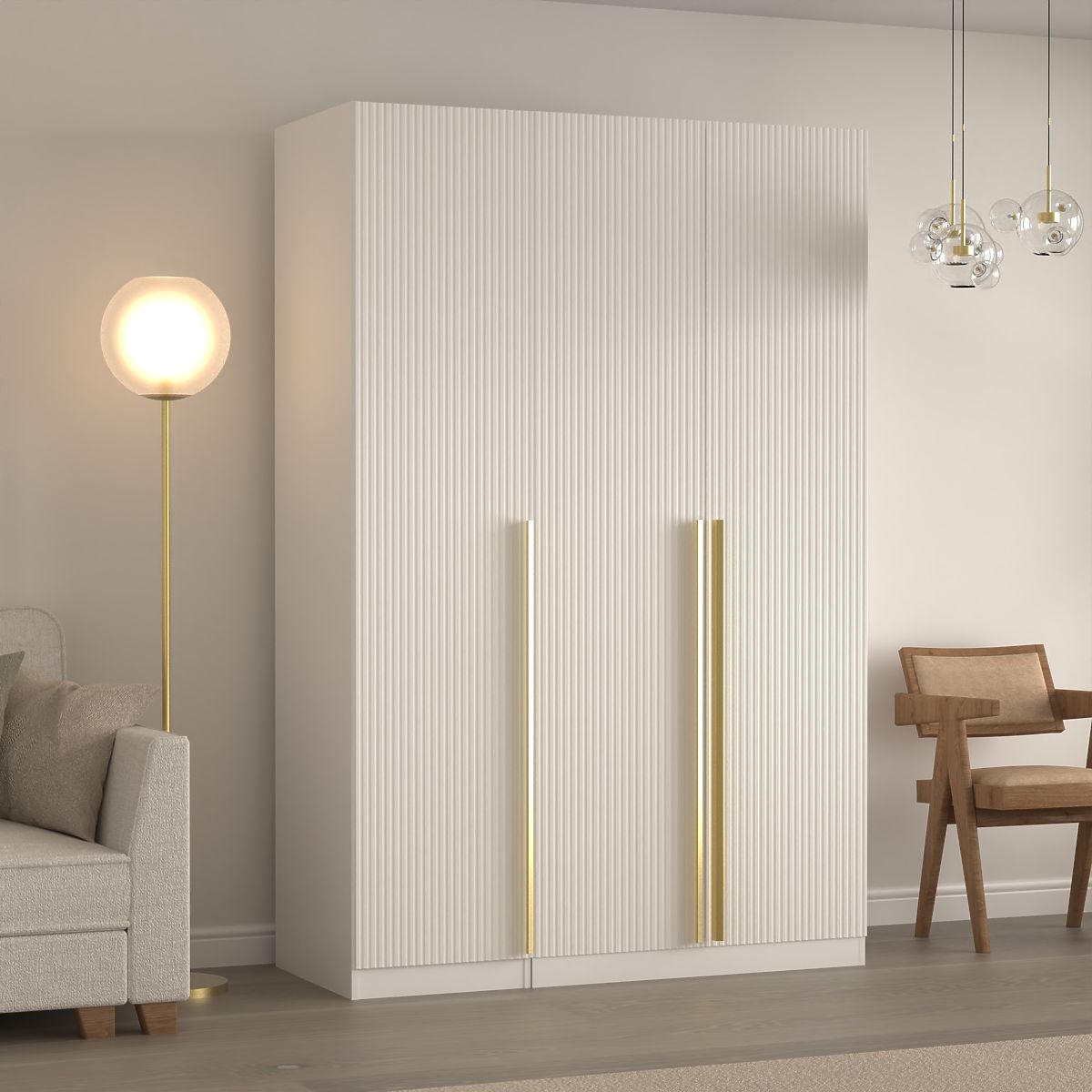 Armoire blanche Neroli avec rainures décoratives et système push to open. .. plus