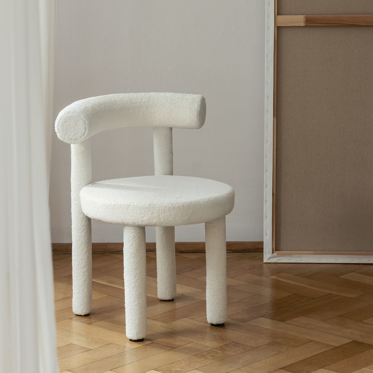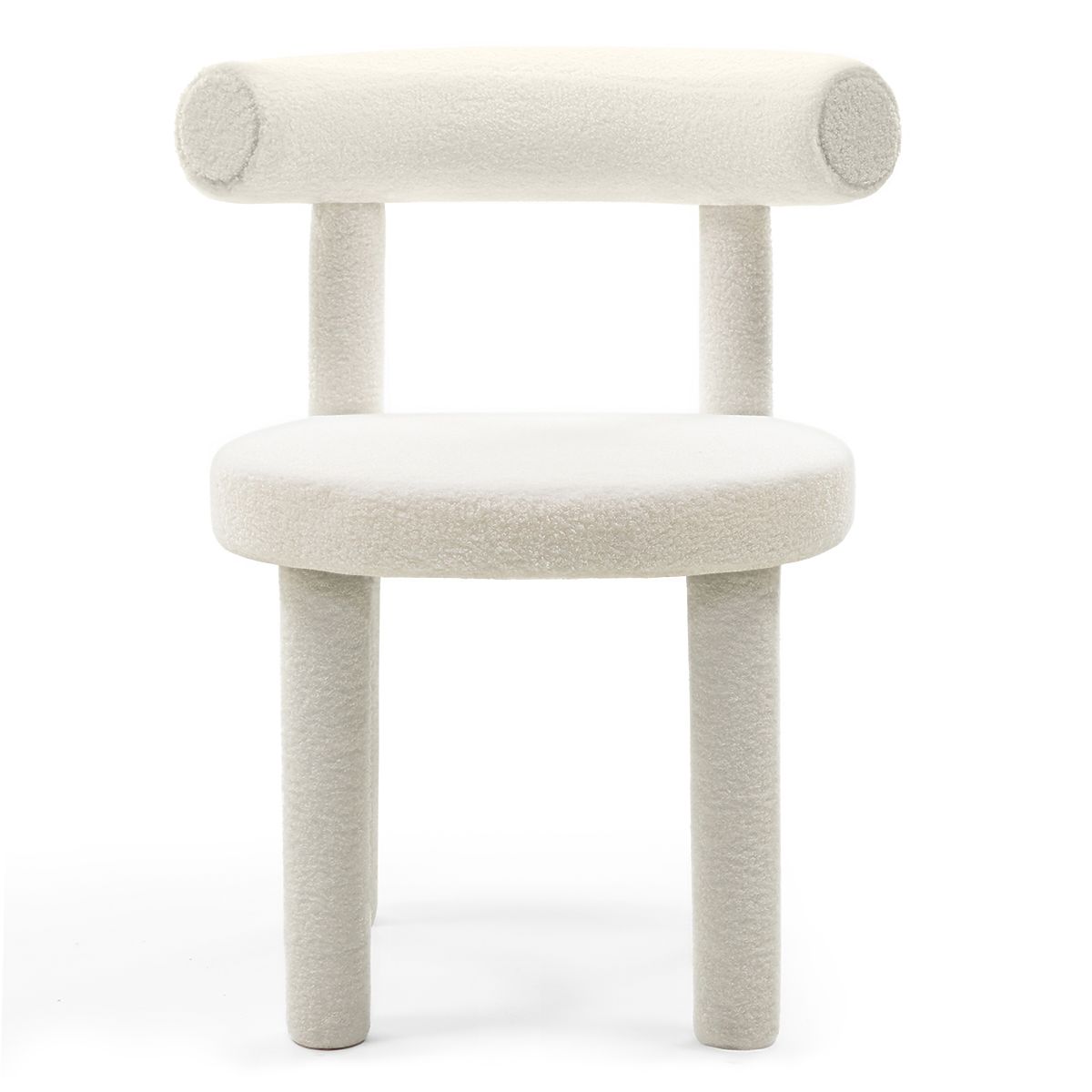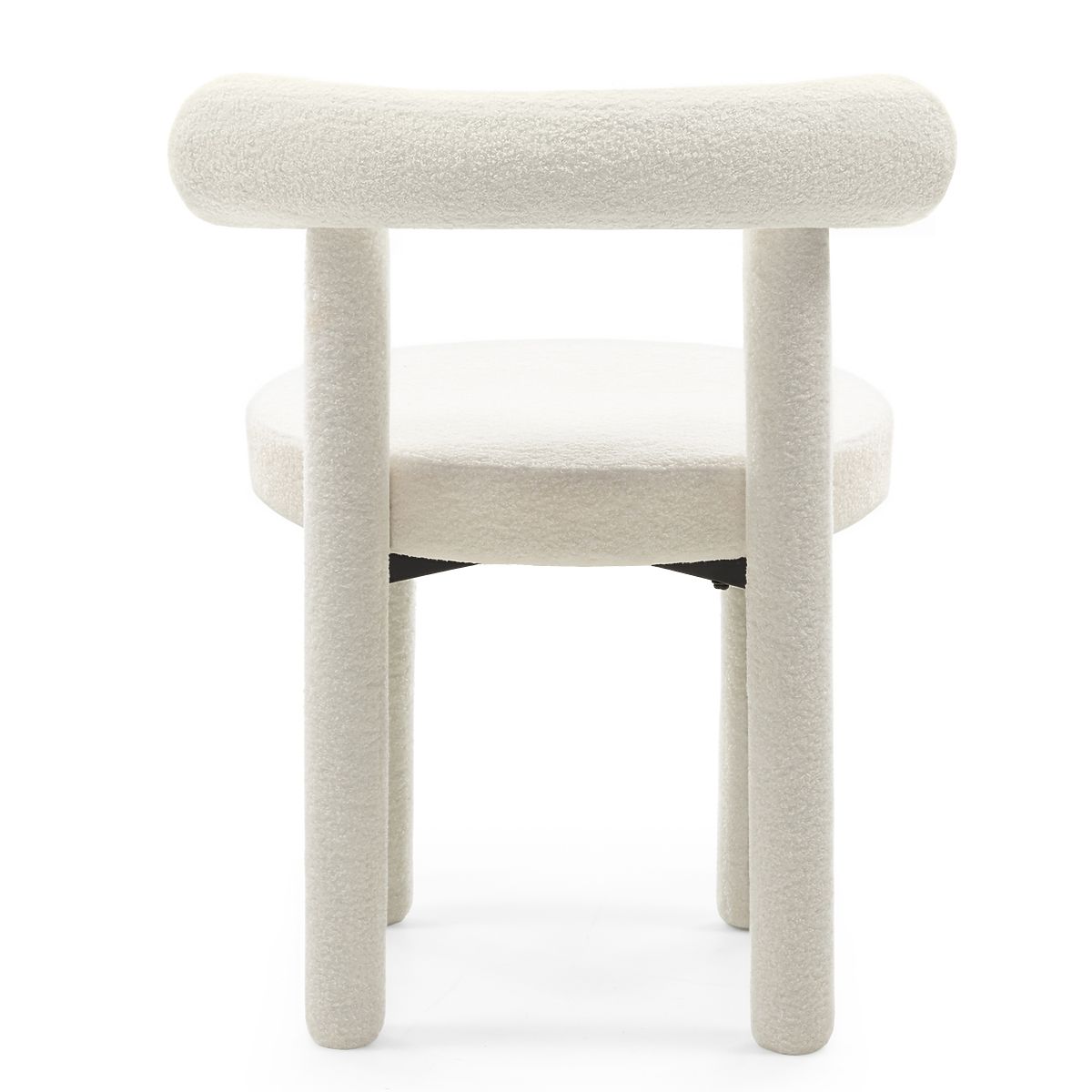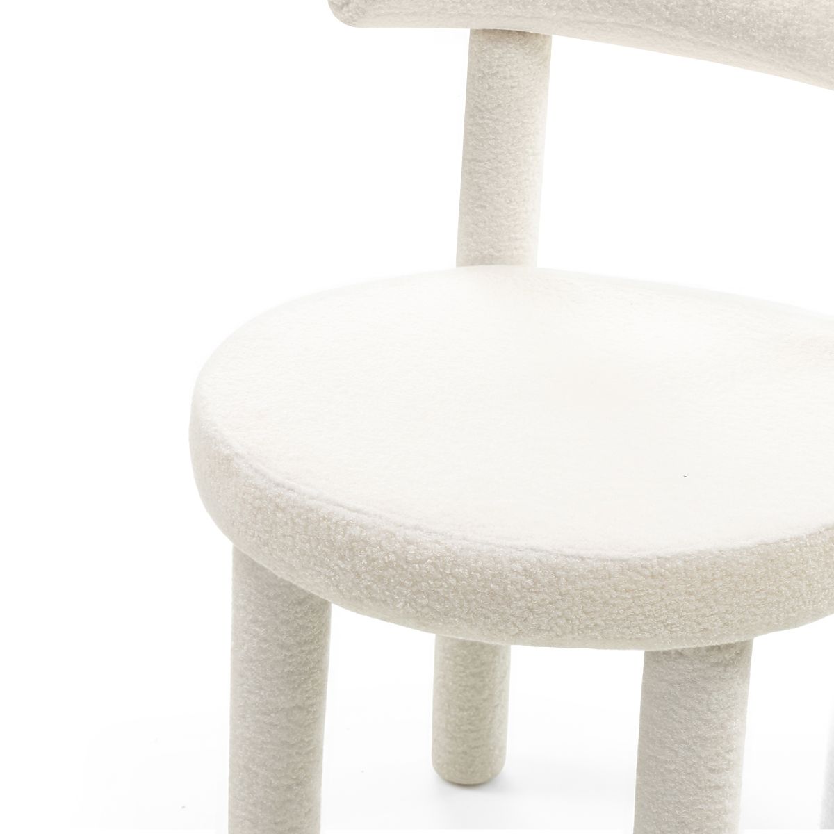 Chaise de salle à manger moderne avec tissu bouclé écru et dossier arrondi. .. plus