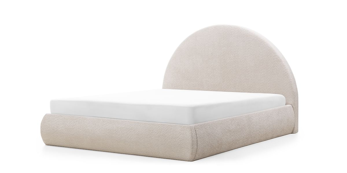 Lukahome.fr » Lit / Matrimonial lit / Lit 160x200 / Lit rembourré Orbi 160x200 cm, avec sommier et espace de rangement, arrondi, beige