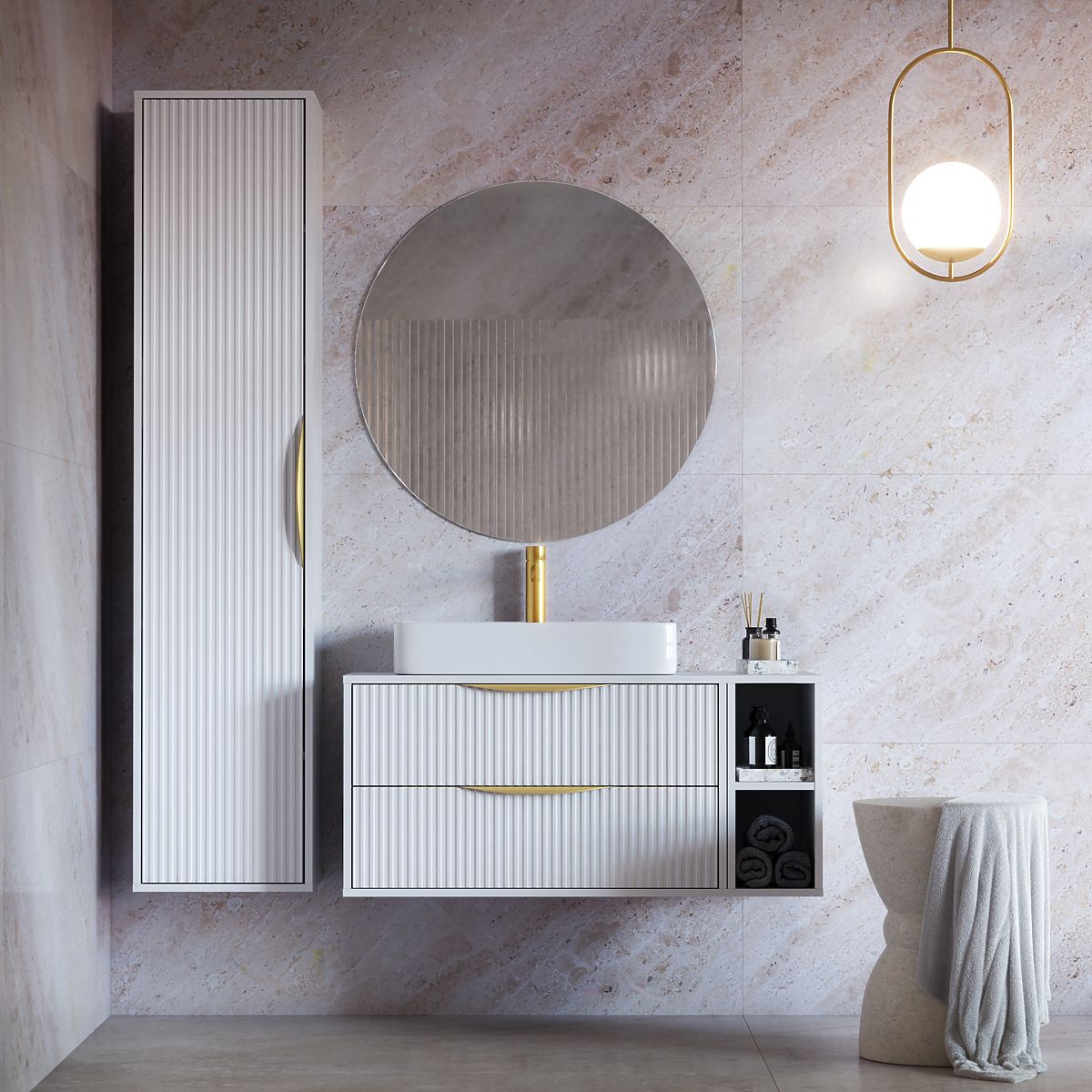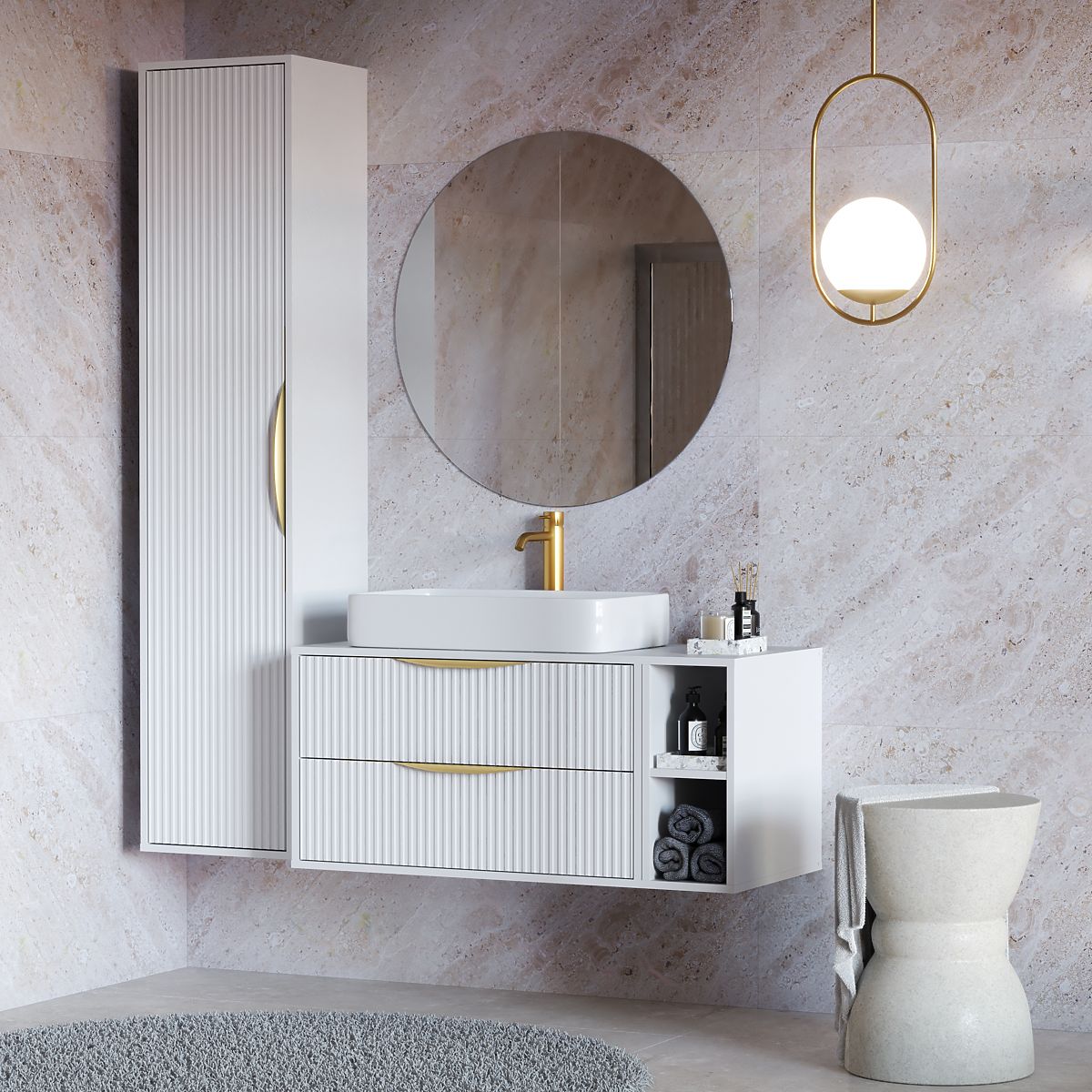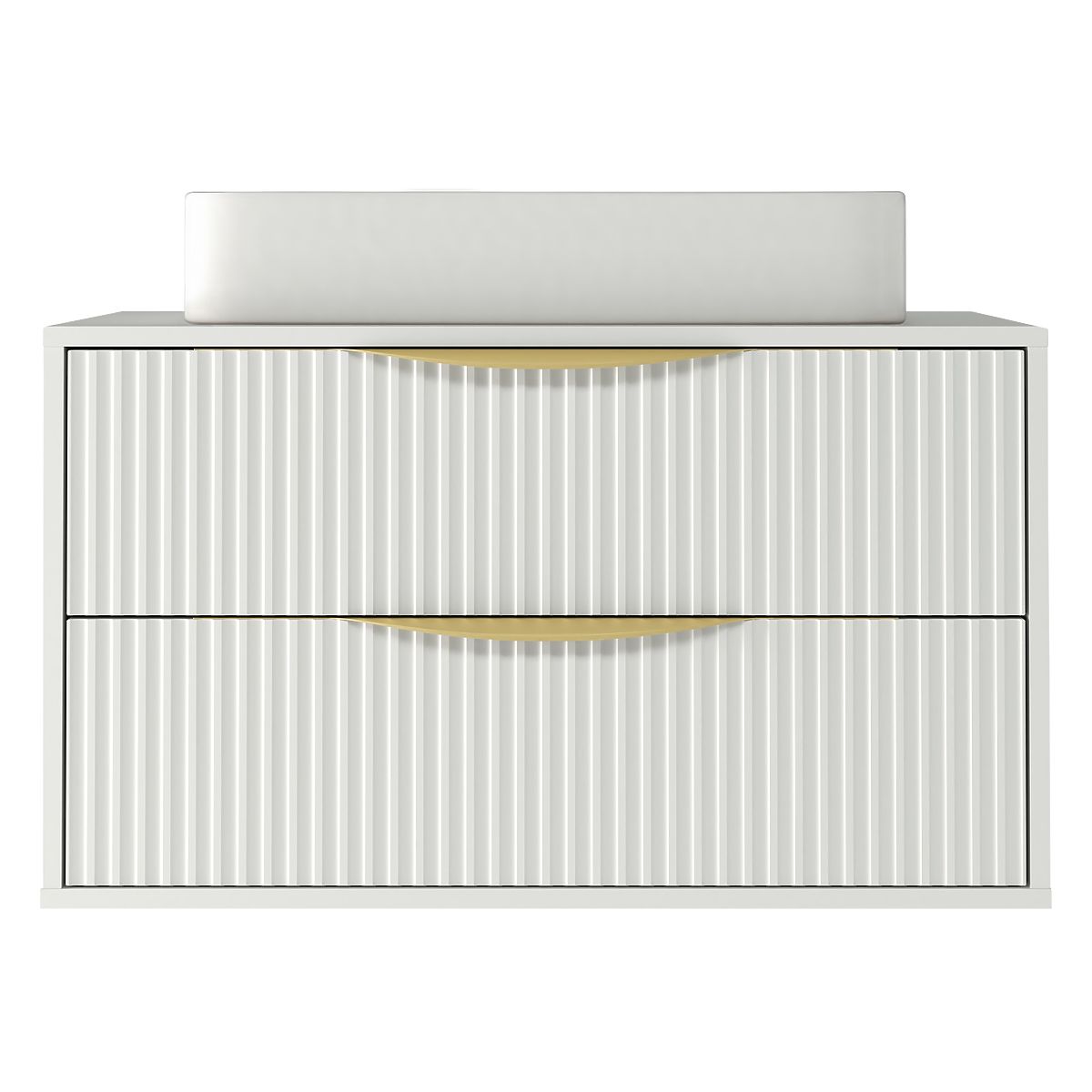 Lukahome.fr » Bathroom & Toilet / Salle de bain armoires / Meuble sous lavabo Avila 2.0, 80 cm, rainuré, poignées dorées, blanc