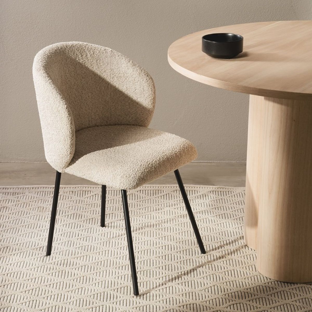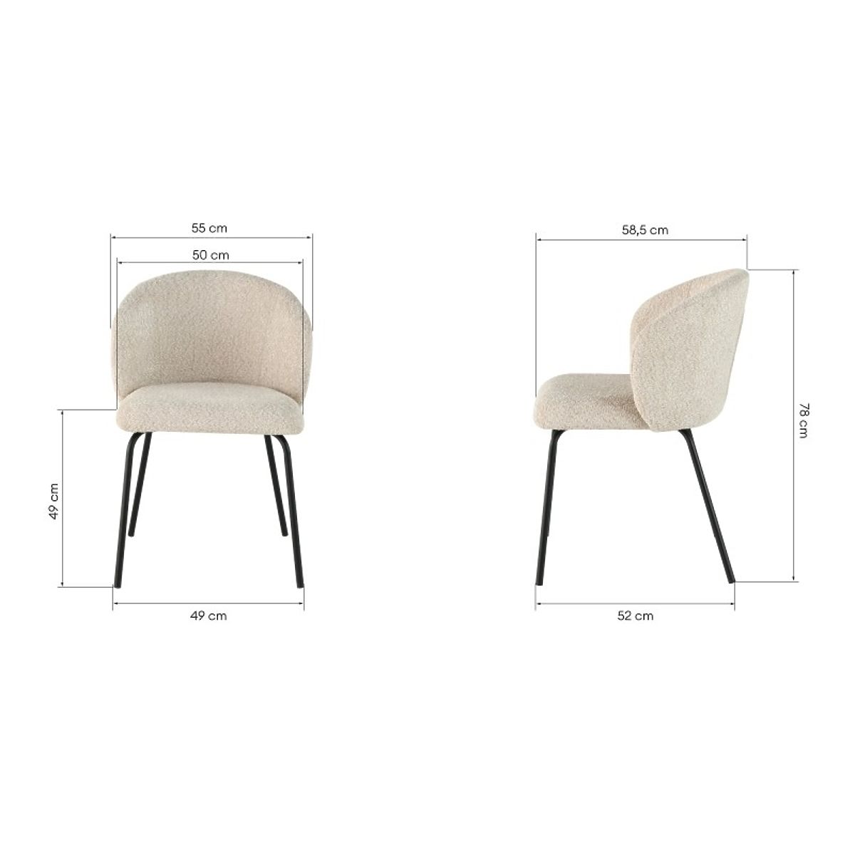 Chaise Larisa avec revêtement beige et pieds noirs en métal. .. plus