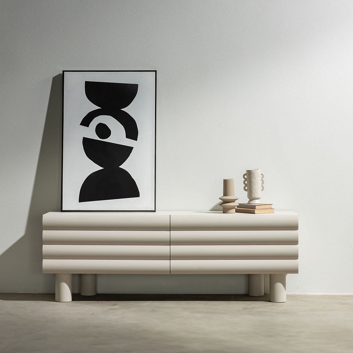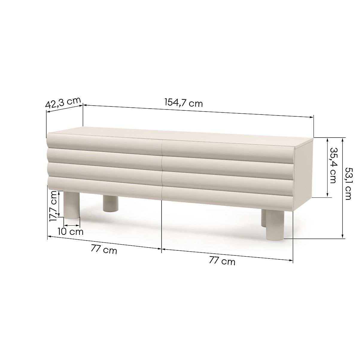 Lukahome.fr » Tables et tables basses / Meubles TV / Meuble TV Anatra, rainuré, beige, formes arrondies