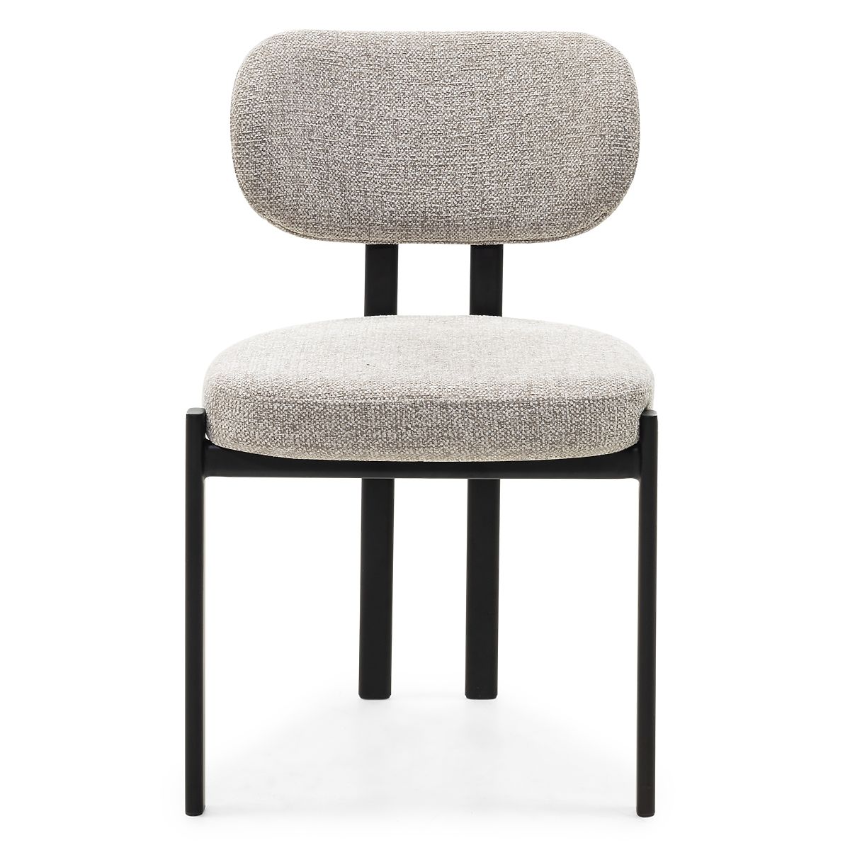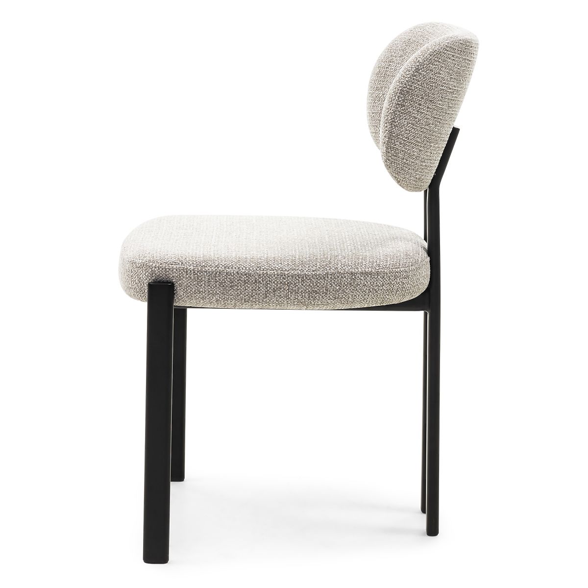 Chaise Flare avec tissu beige et pieds en métal noir. .. plus