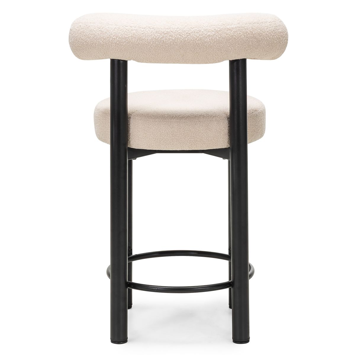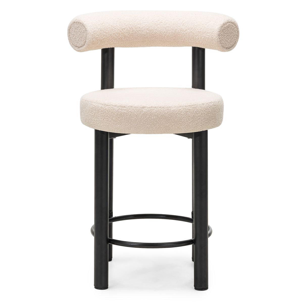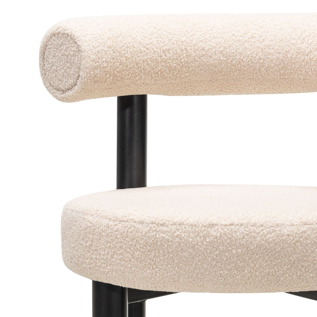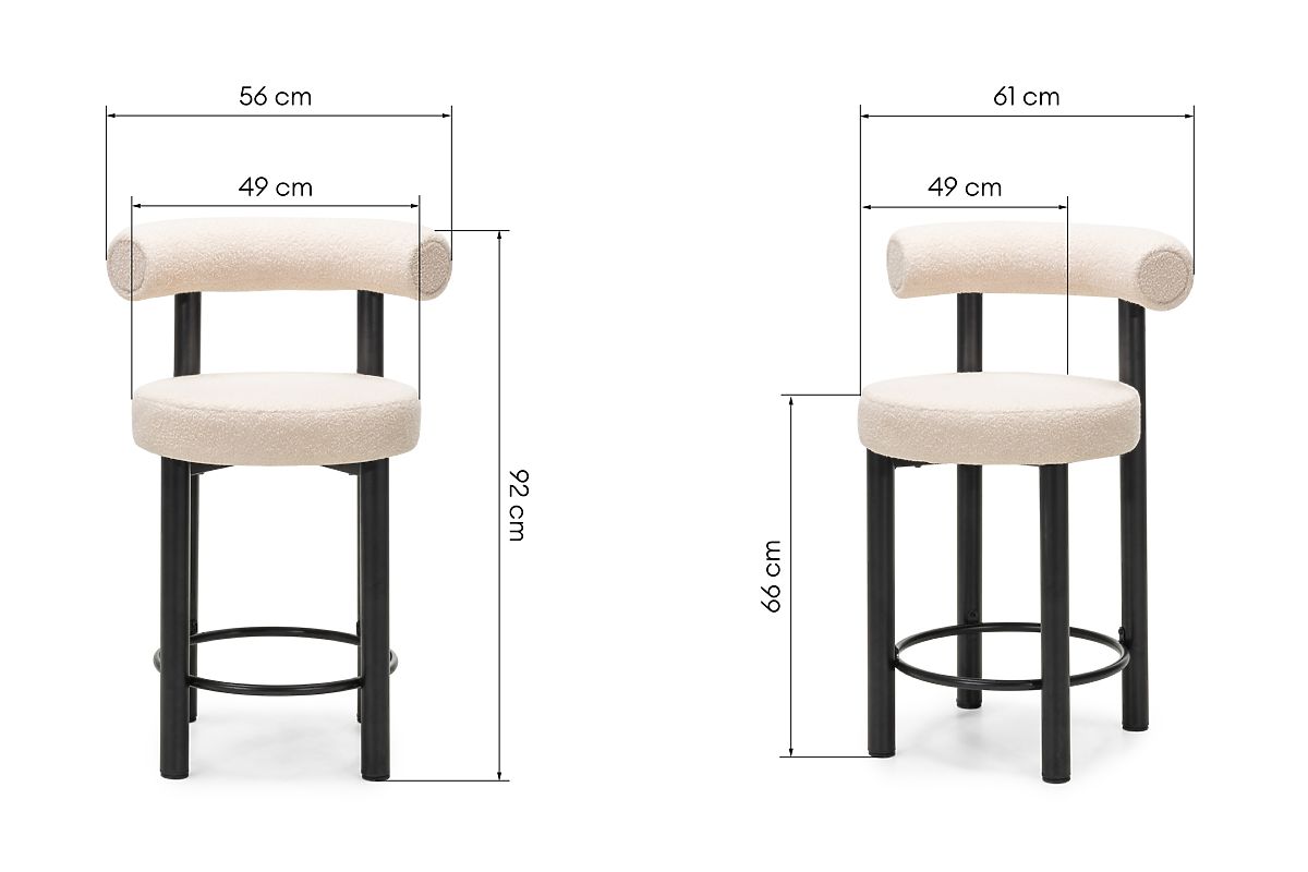 Chaise de bar Pedro avec tissu bouclé beige et pieds noirs réglables. .. plus