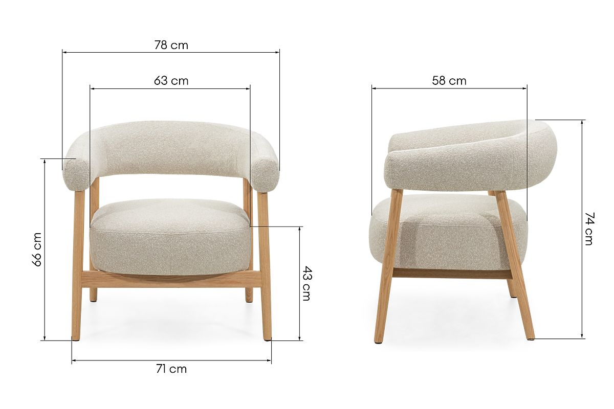 Lukahome.fr » Fauteuils et séance / Fauteuils / Chaise/fauteuil rembourré Montepulciano, beige clair/bois de chêne, arrondi