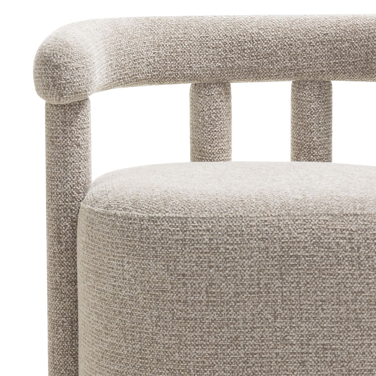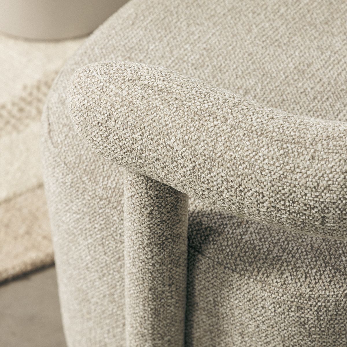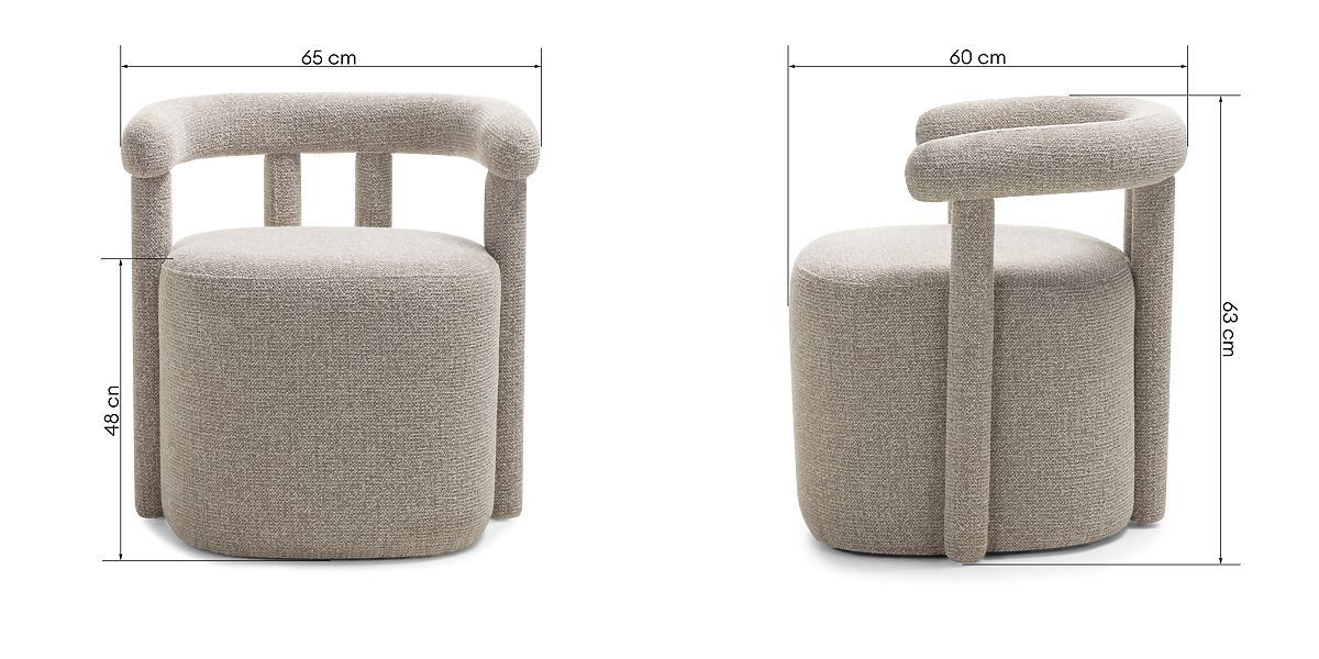 Fauteuil Glen gris avec tissu élégant et formes arrondies. .. plus