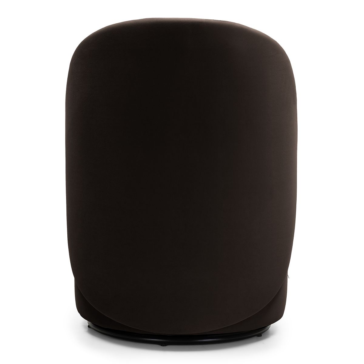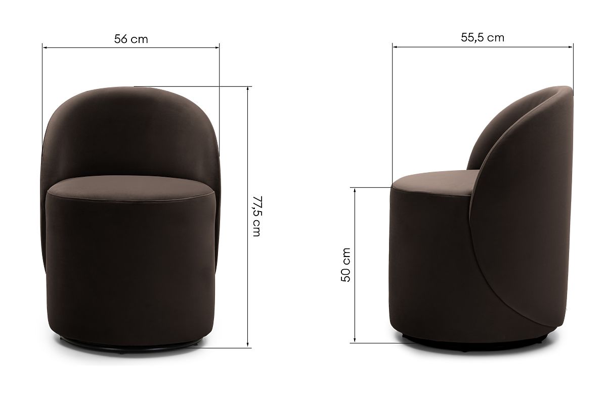 Chaise pivotante en velours brun avec formes arrondies. .. plus