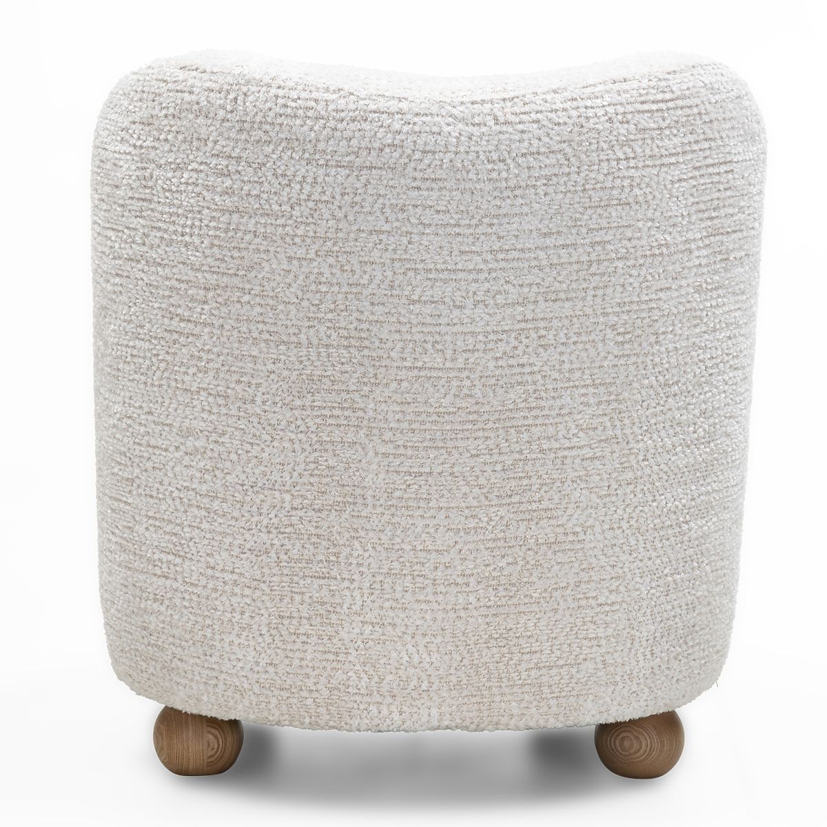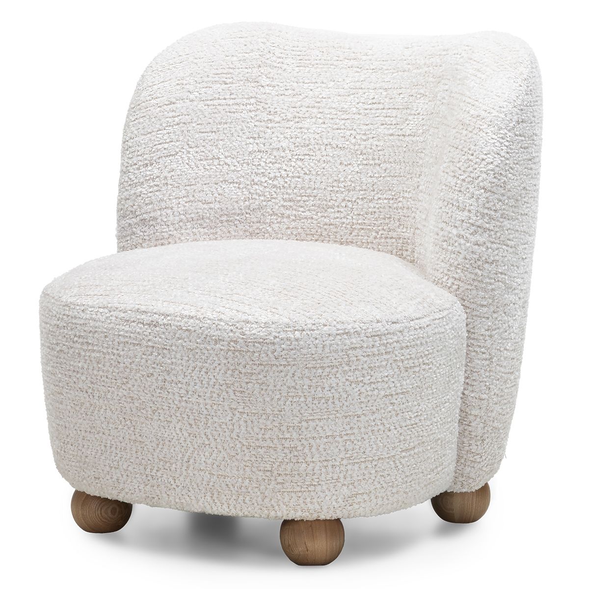 Fauteuil Monroe avec tissu beige et pieds boules en bois de frêne. .. plus