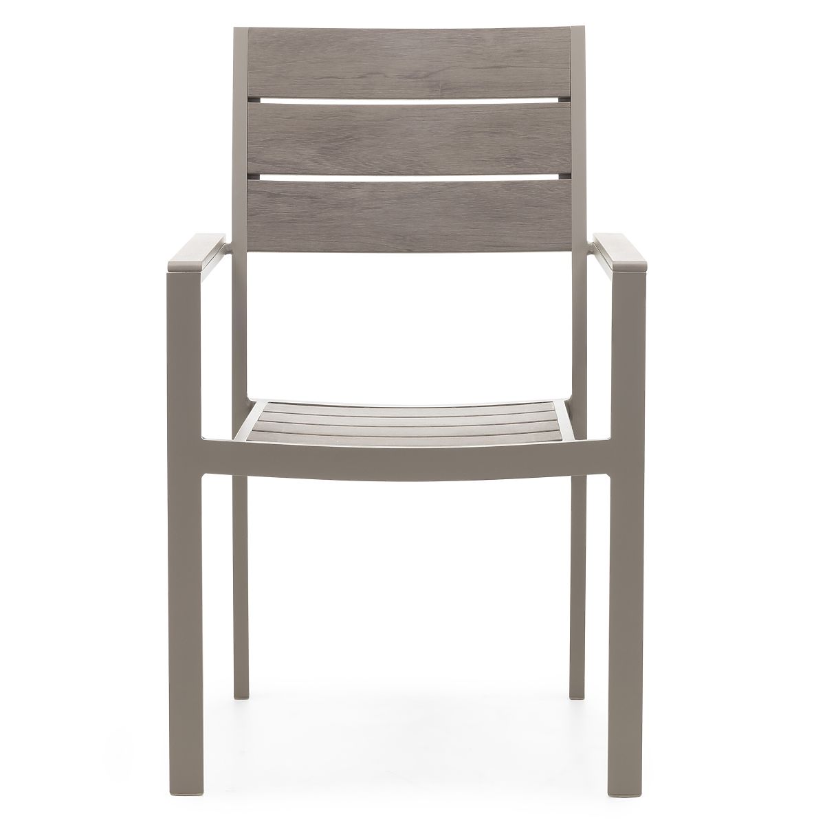 Chaise de jardin en aluminium et polywood beige-gris, empilable et résistante aux intempéries. .. plus