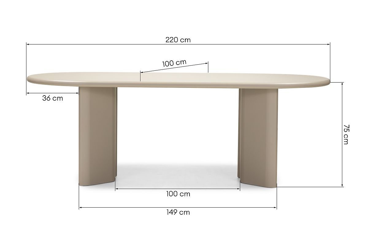 Table ovale Lima 220 cm en beige foncé avec pieds au design unique. .. plus